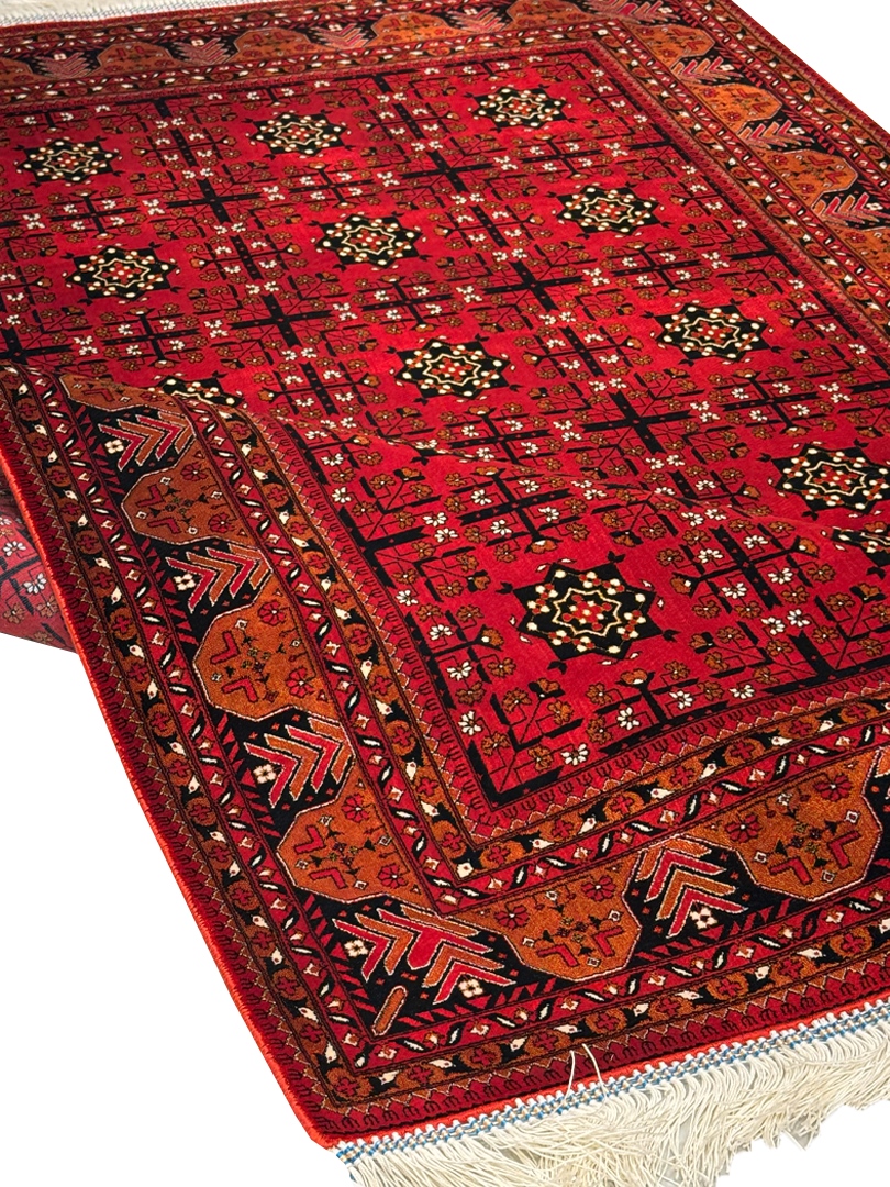 ربات بافت قم 100*150 مستطيل خان محمدي 70 رج ابريشم و بنبوسيلک لاکي کرم نارنجي 2 Kg
