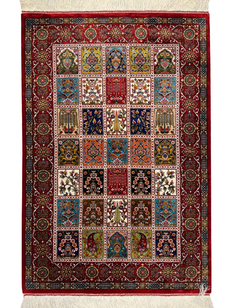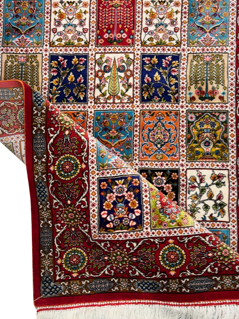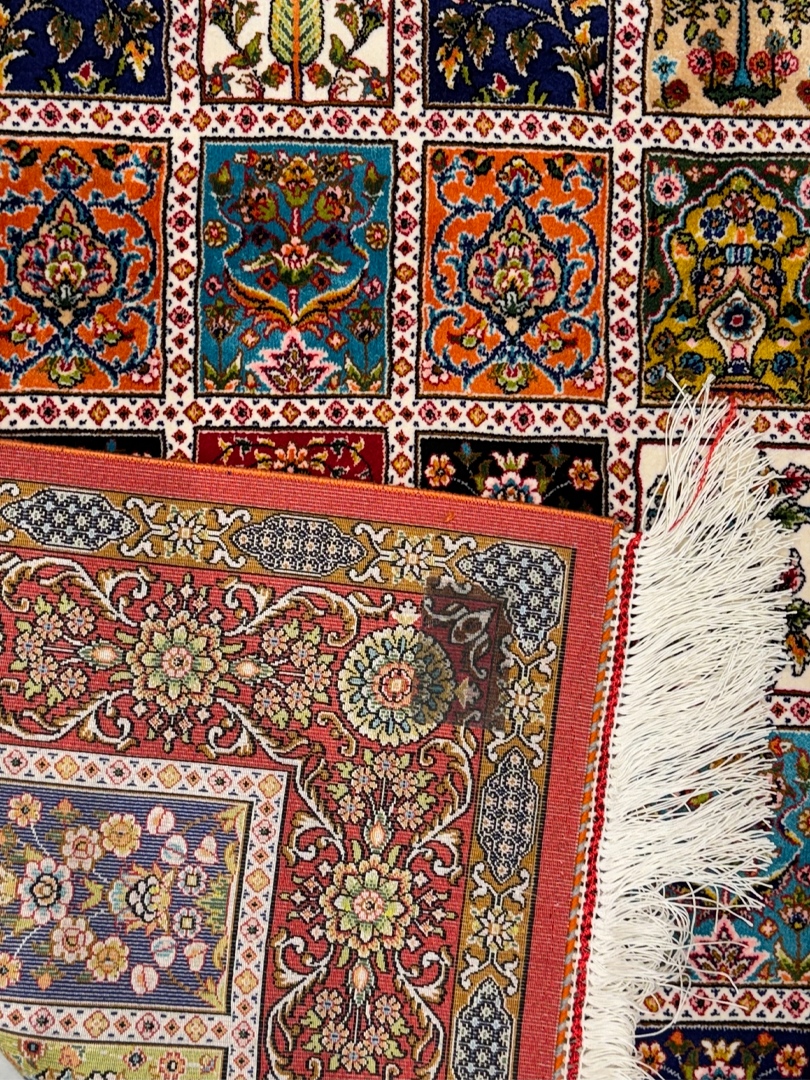 ربات بافت قم 80*120 مستطيل خشتي 70 رج ابريشم و بنبوسيلک کرم-لاکي لاکي kg1