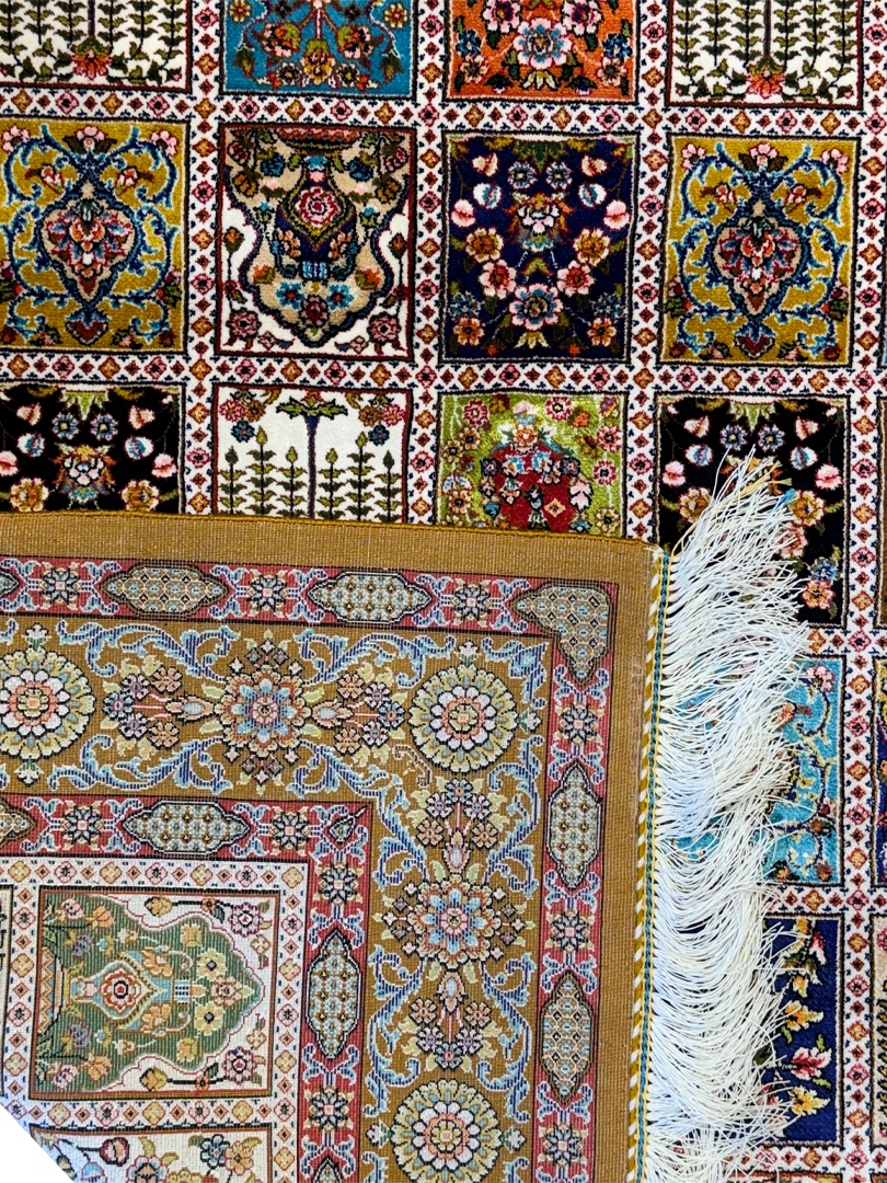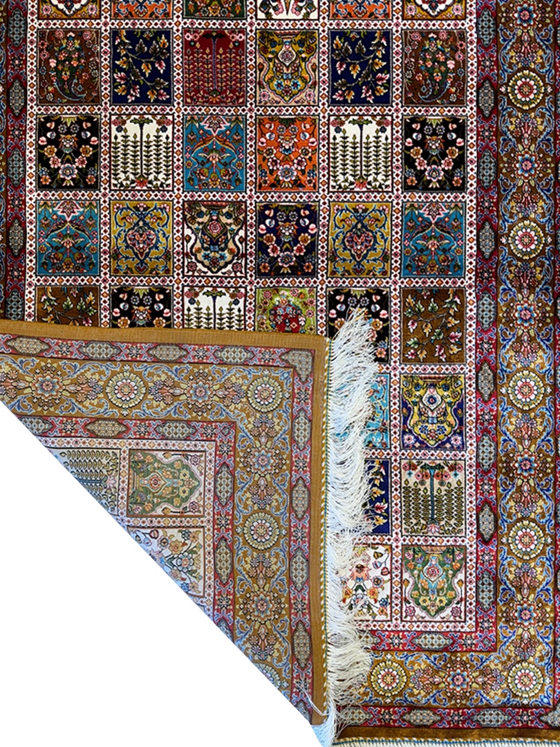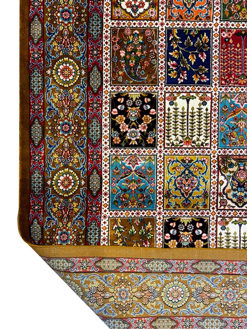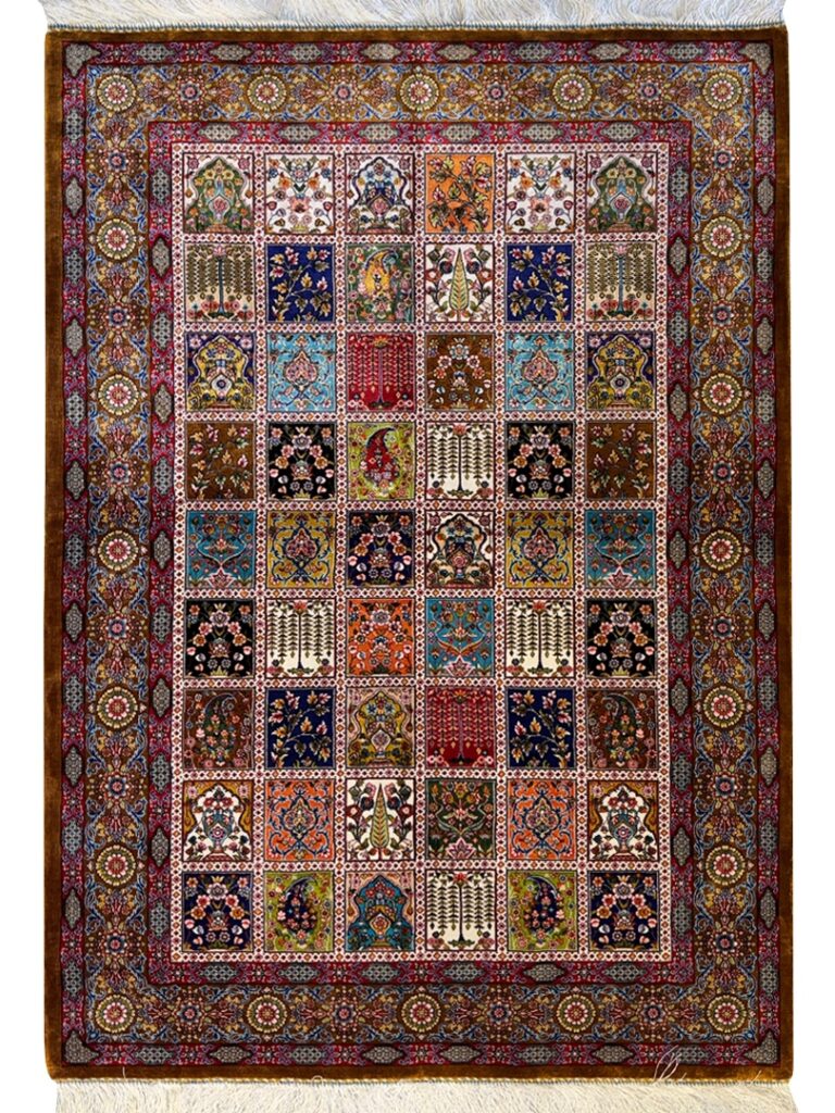 ربات بافت قم 100*150 مستطيل خشتي 70 رج ابريشم و بنبوسيلک دارچيني دارچيني 3 Kg