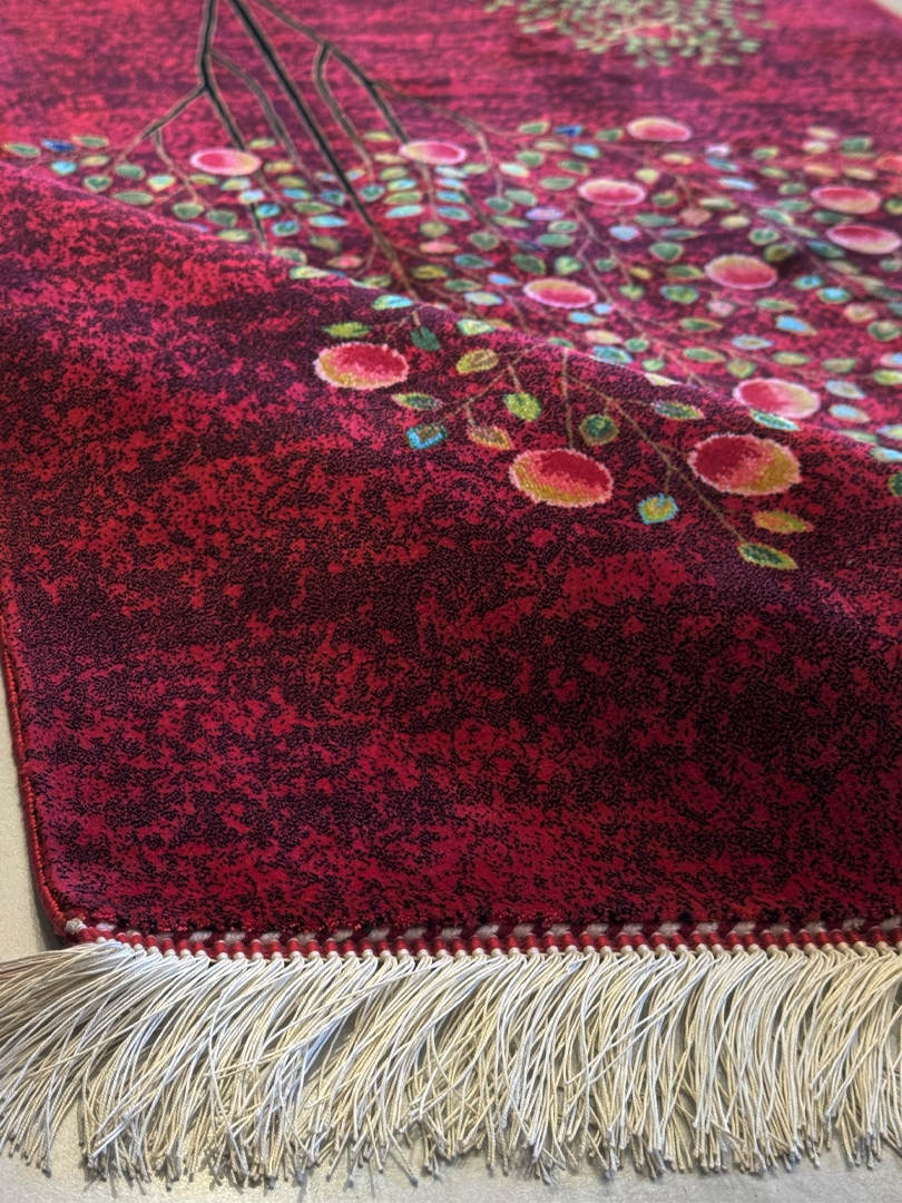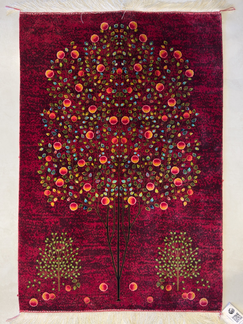 ربات بافت قم 80*120 مستطيل درخت انار 70 رج ابريشم و بنبوسيلک زرشکي زرشکي 2 Kg