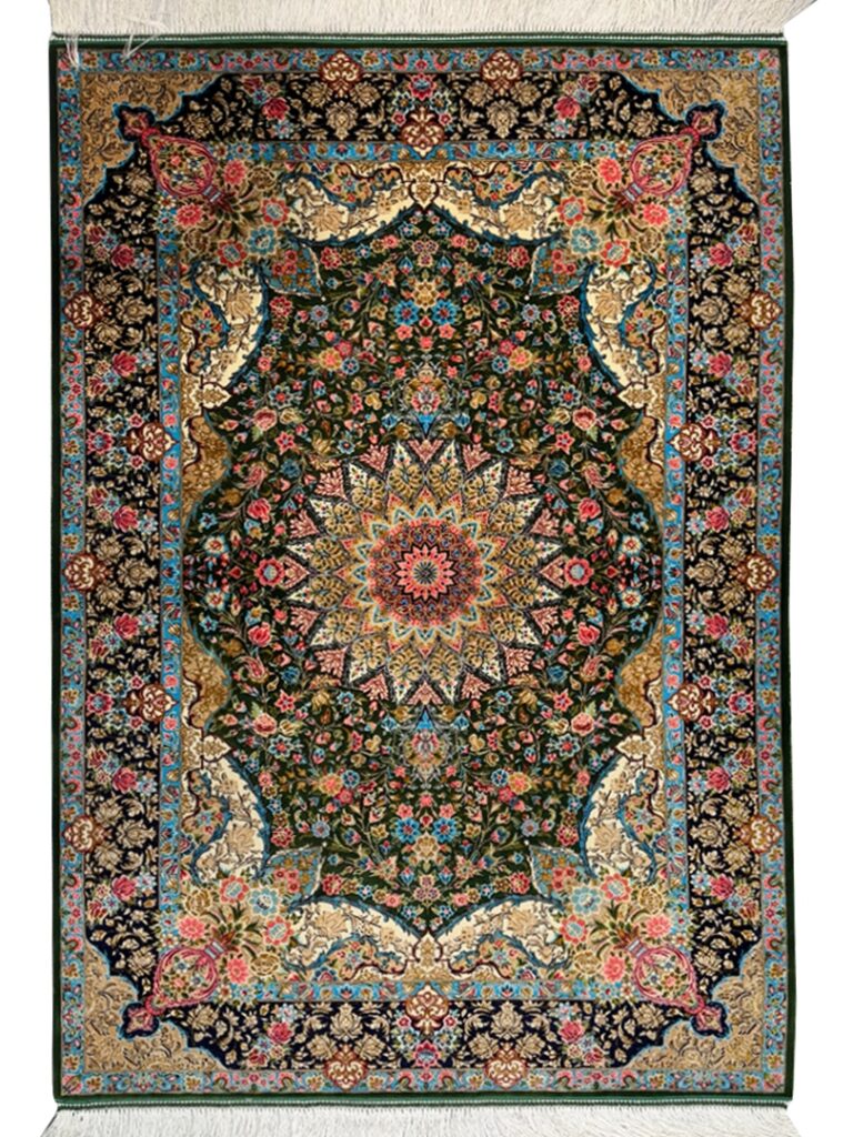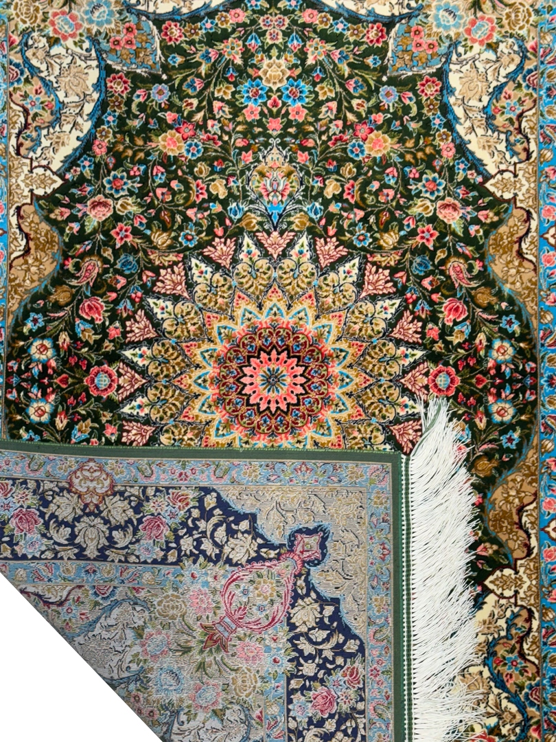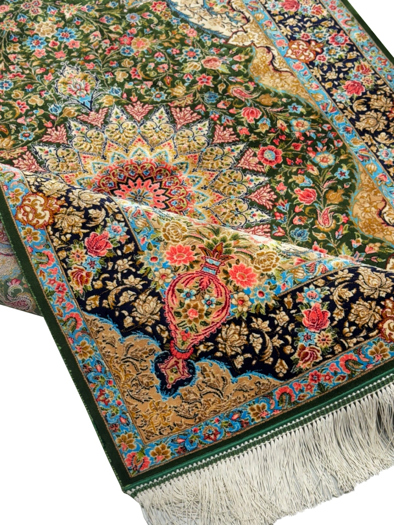 ربات بافت قم 80*120 مستطيل ذبيهي 70 رج ابريشم و بنبوسيلک سبز سبز 2 Kg