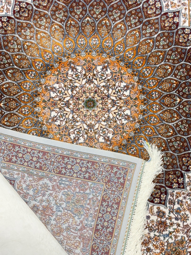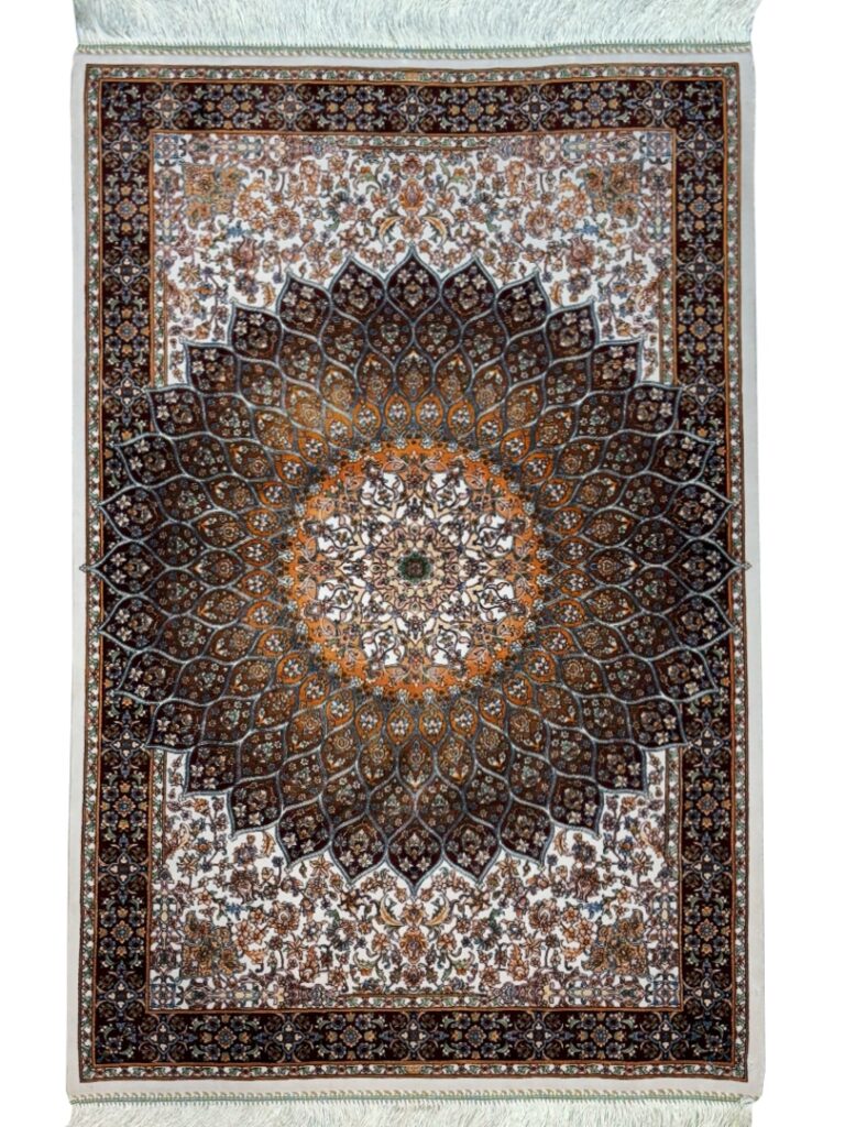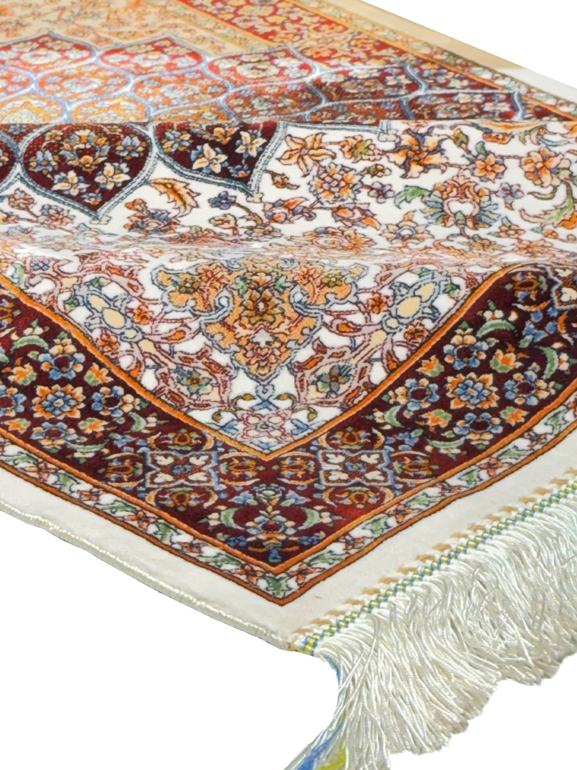 ربات بافت قم 80*120 مستطيل شکارگاه 70 رج ابريشم و بنبوسيلک کرم عنابي کرم عنابي 2 Kg
