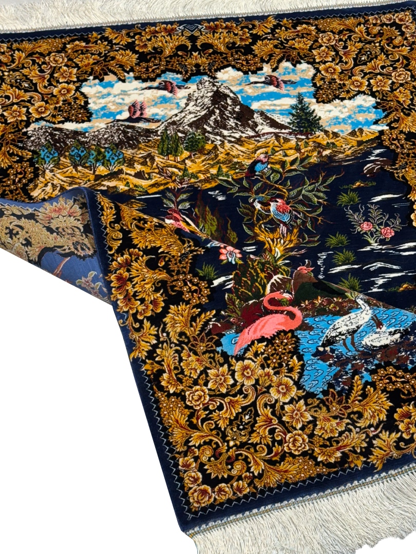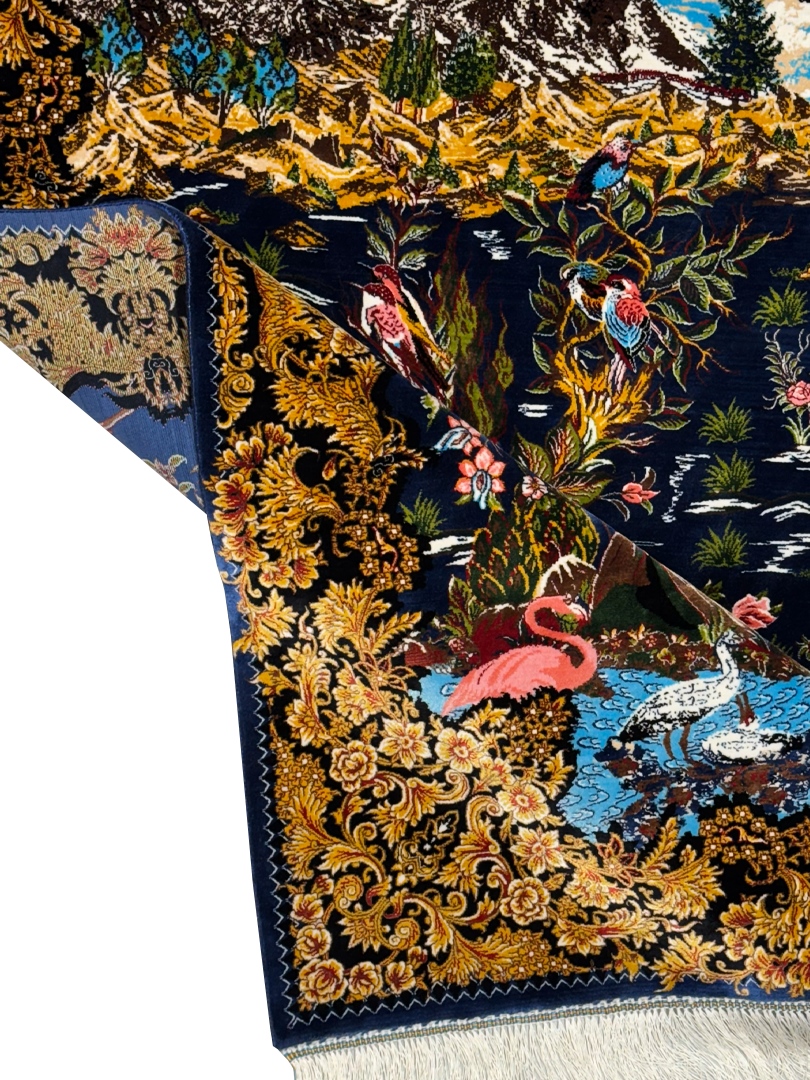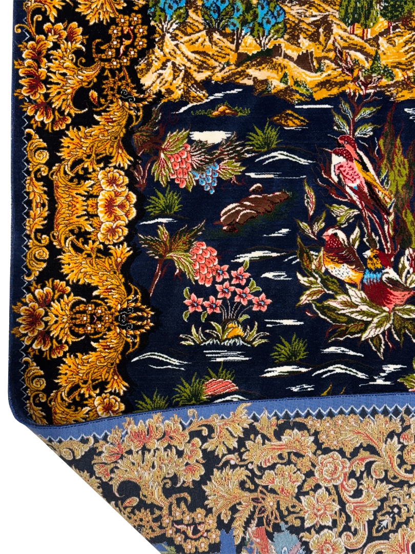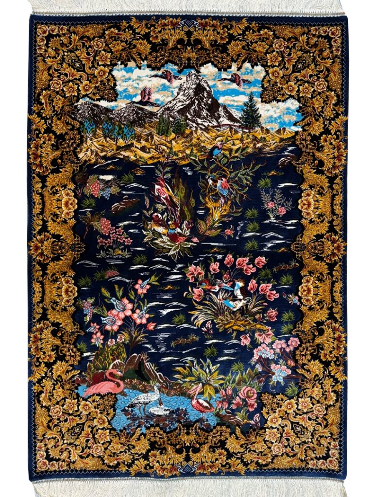 فرش ربات بافت مستطیل طبیعت 70 رج تمام ابریشم کد 2003999