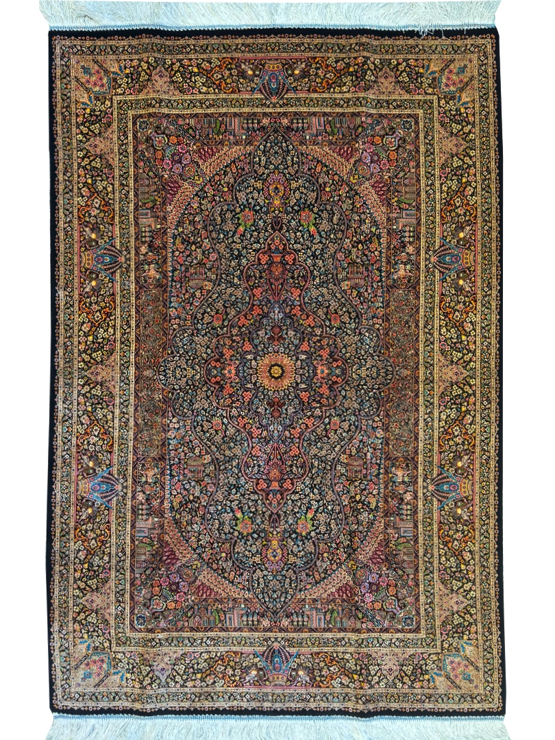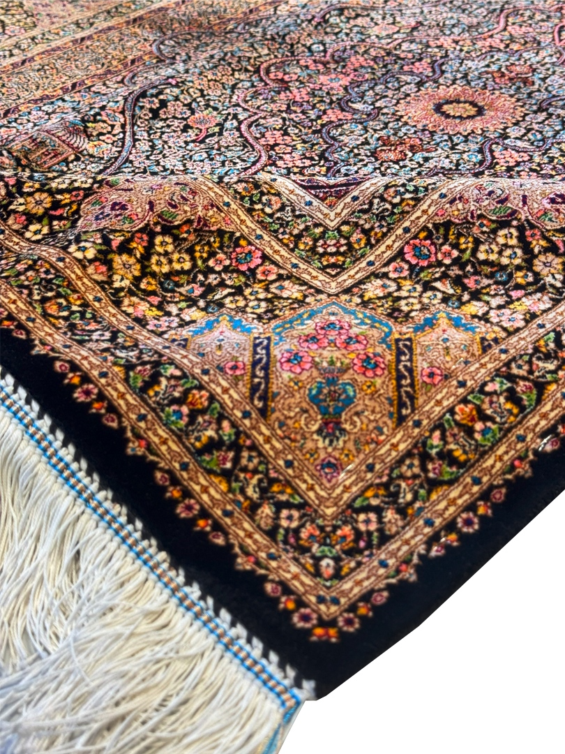 ربات بافت ربات 100*150 مستطيل * جمشيدي 70 ابريشم و بنبوسيلک مشکي کرم مشکي قهوه ايي kg1