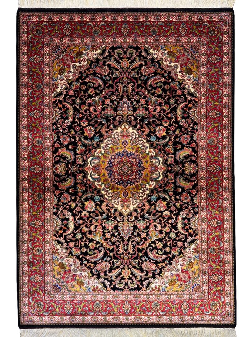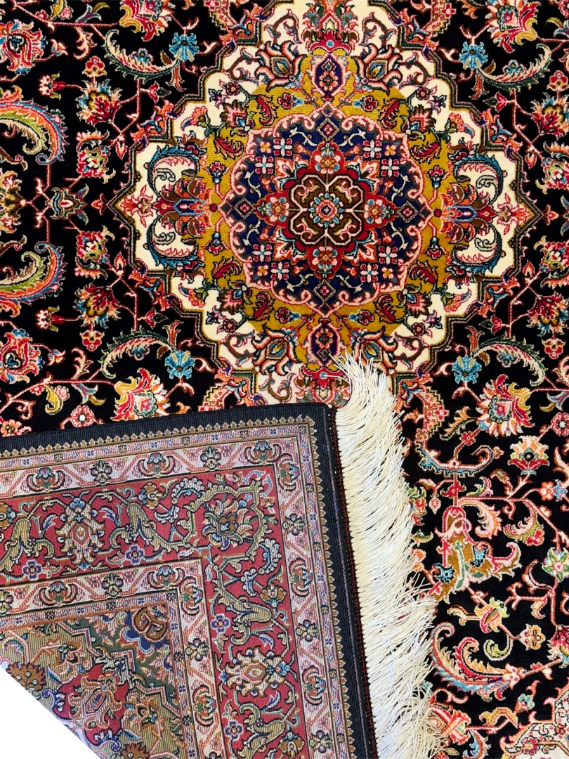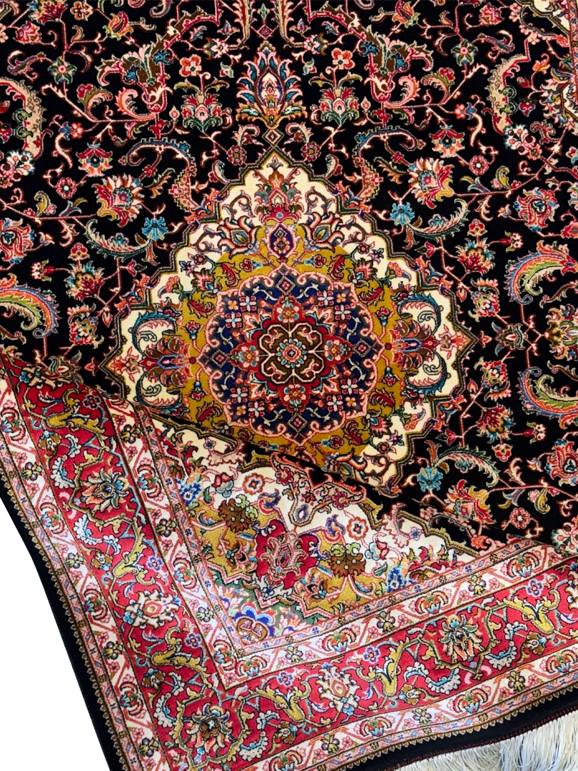 فرش ربات بافت مستطیل لچک ترنجی افشان 70 رج ابریشم و بنبوسیلک کد 2003890