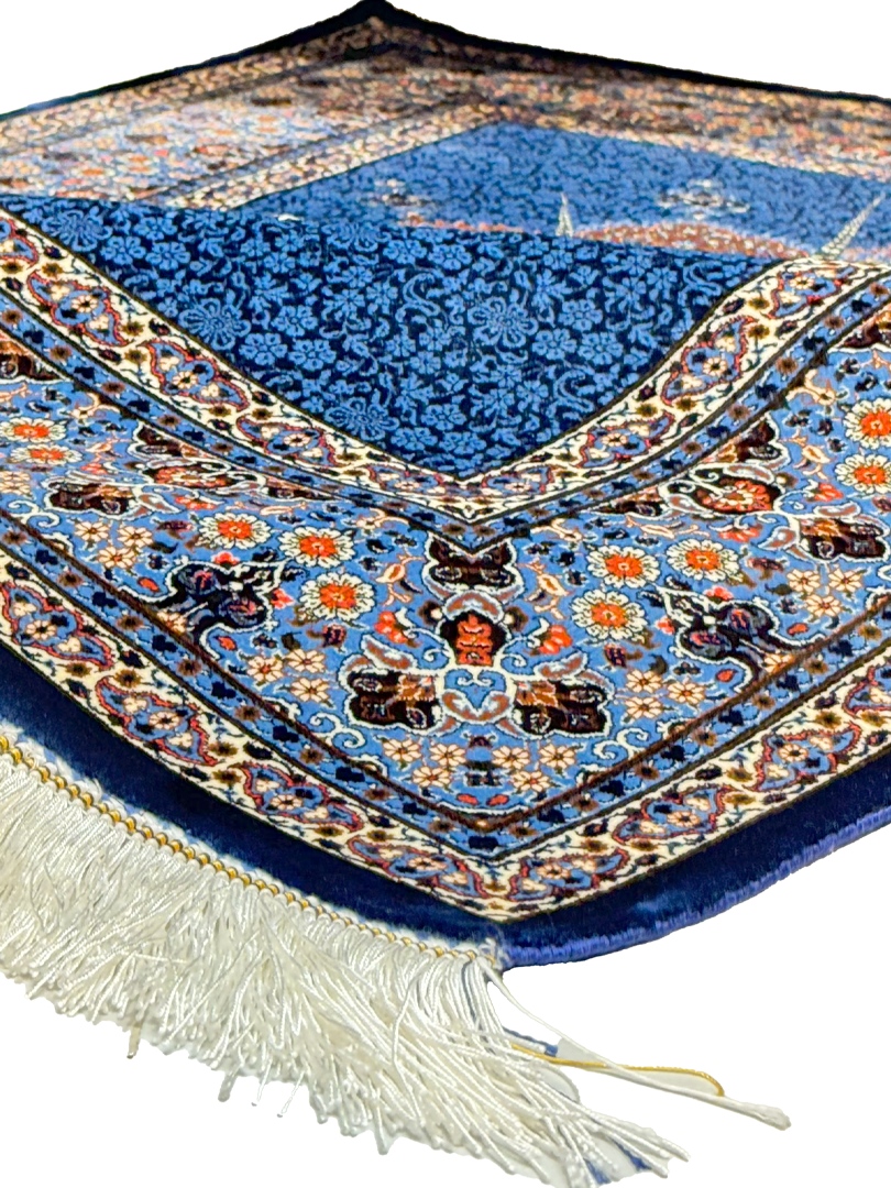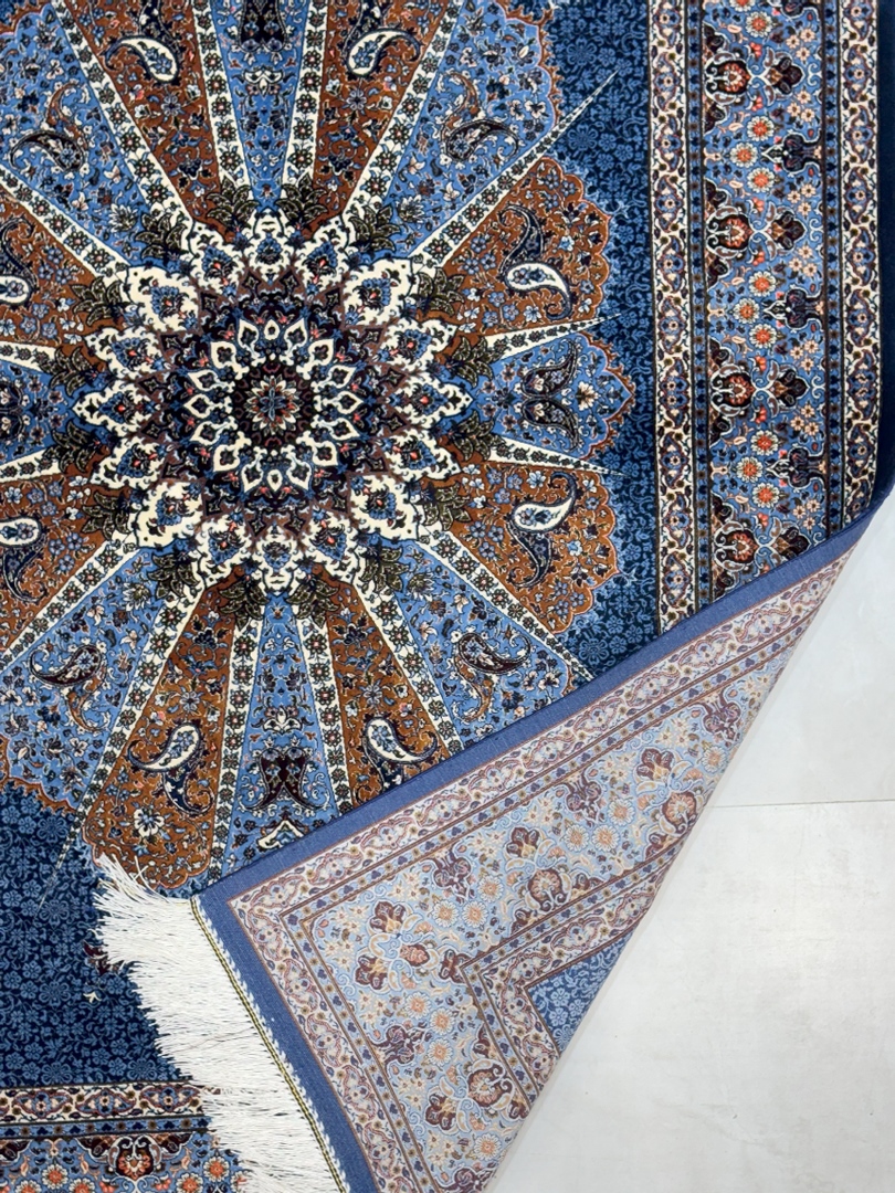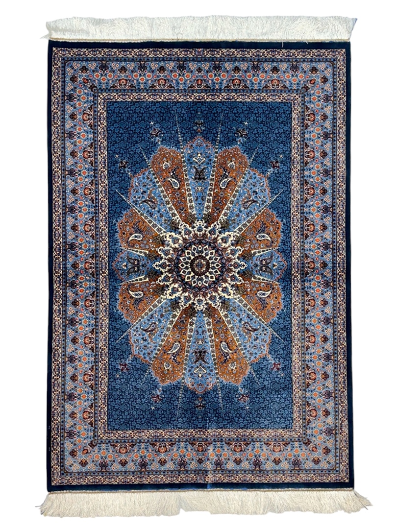 ربات بافت قم 100*150 مستطيل لچک ترنجي رسولي 70 رج ابريشم و بنبوسيلک سورمهاي سورمهاي 3 Kg