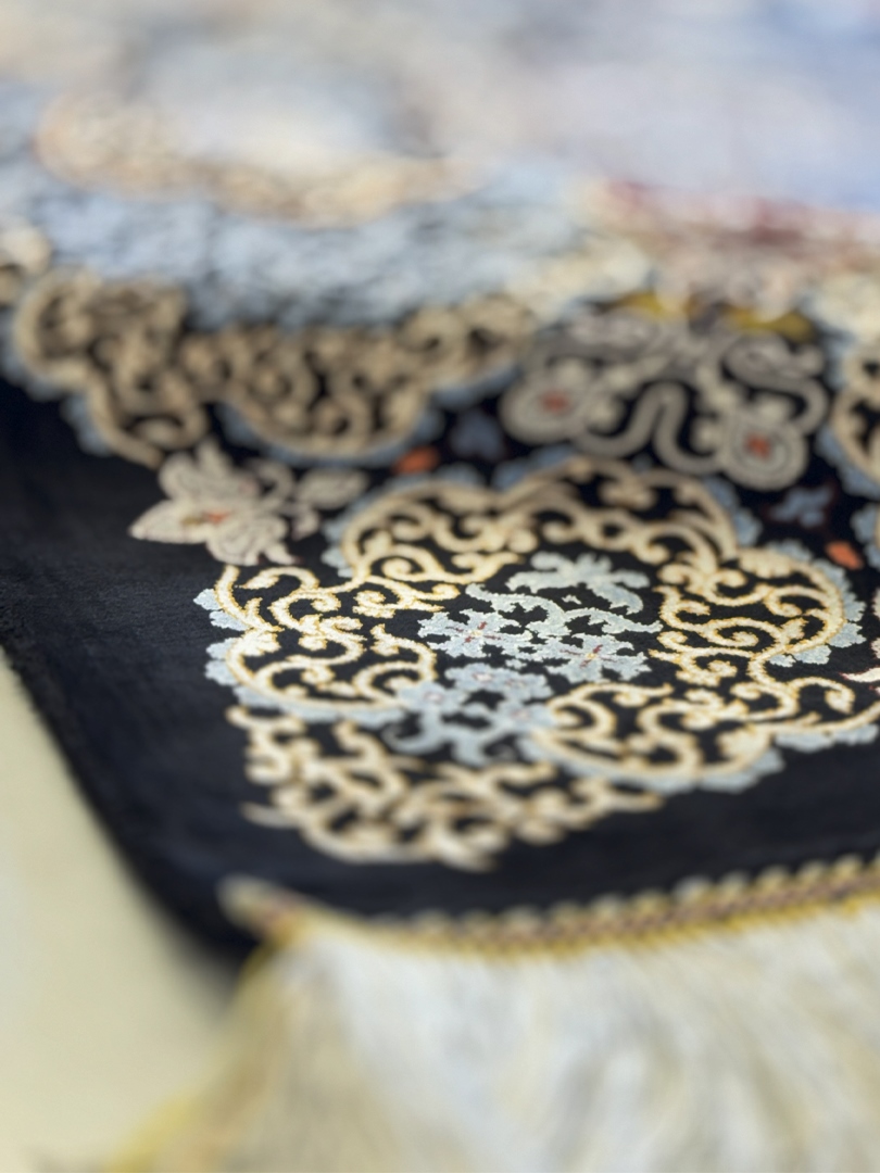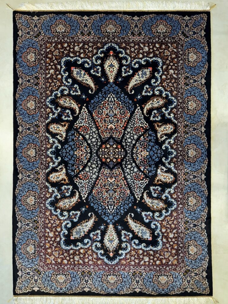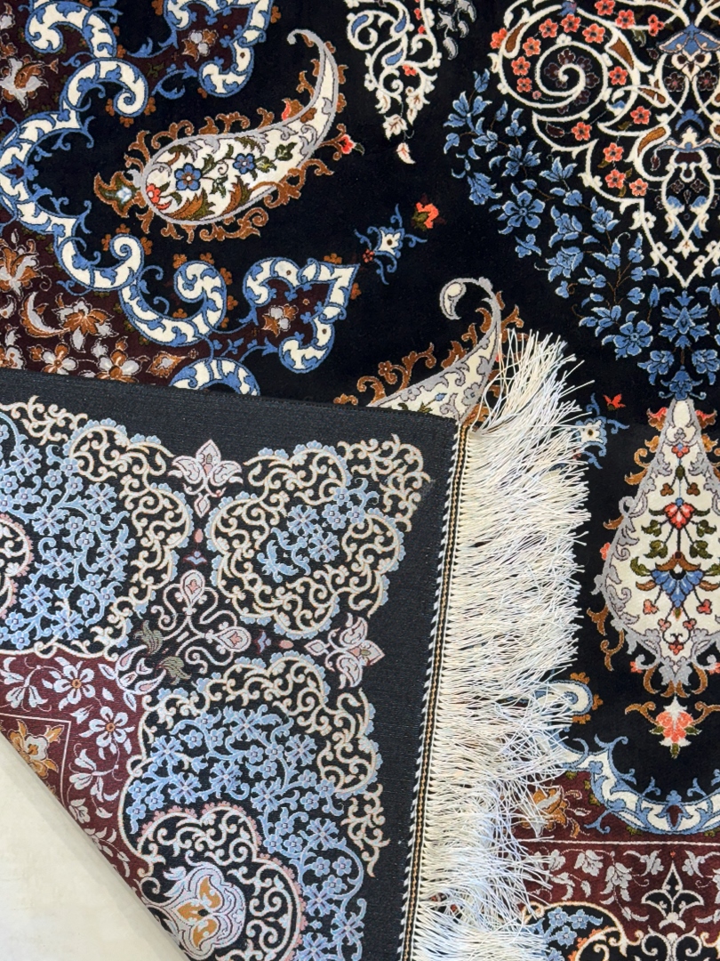 ربات بافت قم 150*225 مستطيل لچک ترنجي 70 رج ابريشم و بنبوسيلک عنابي مشکي عنابي مشکي 8 Kg