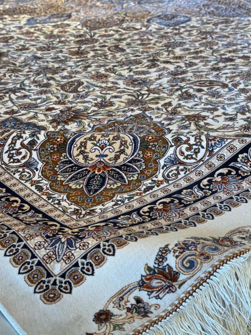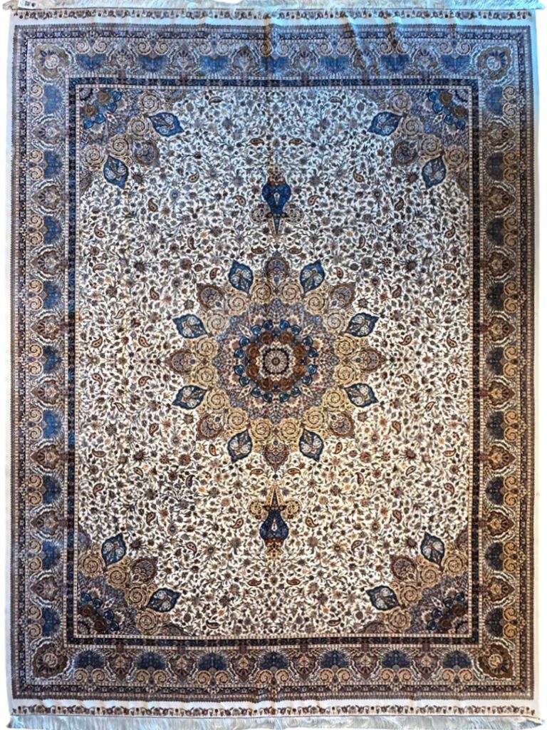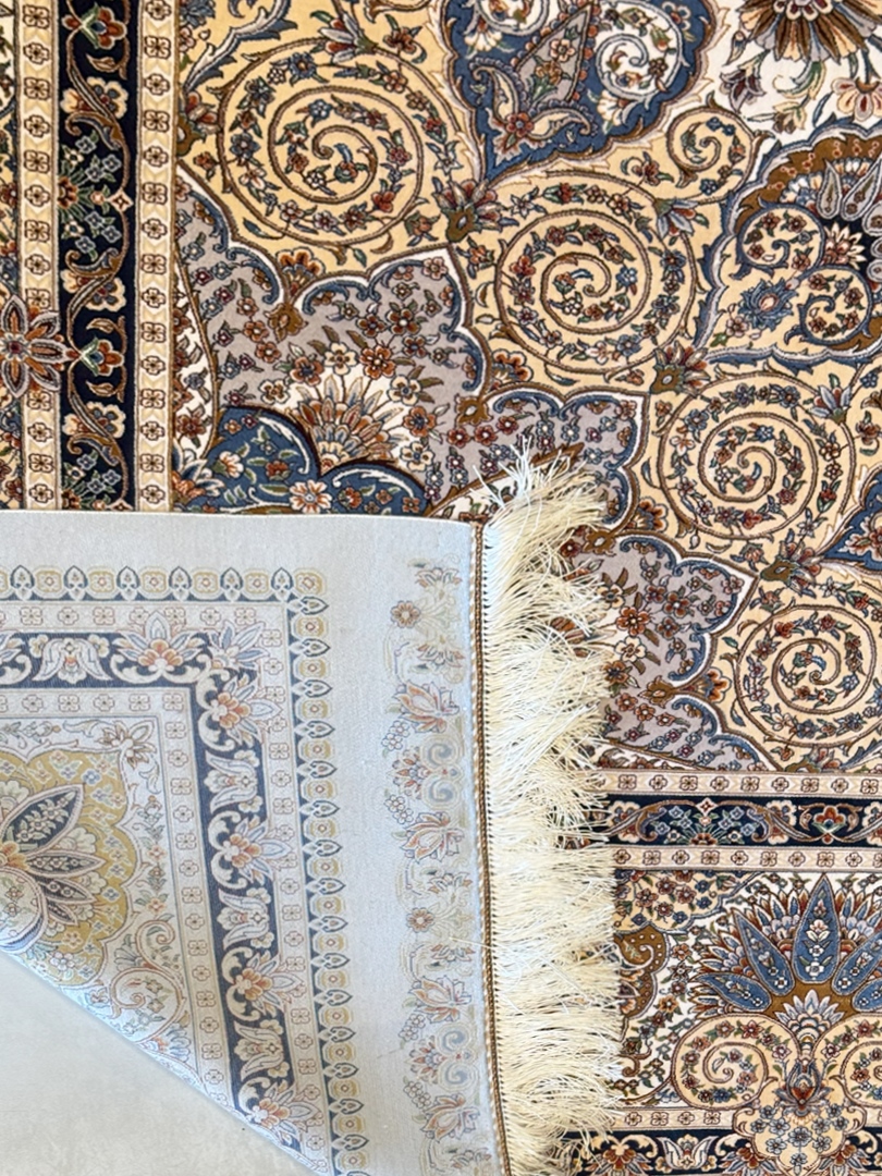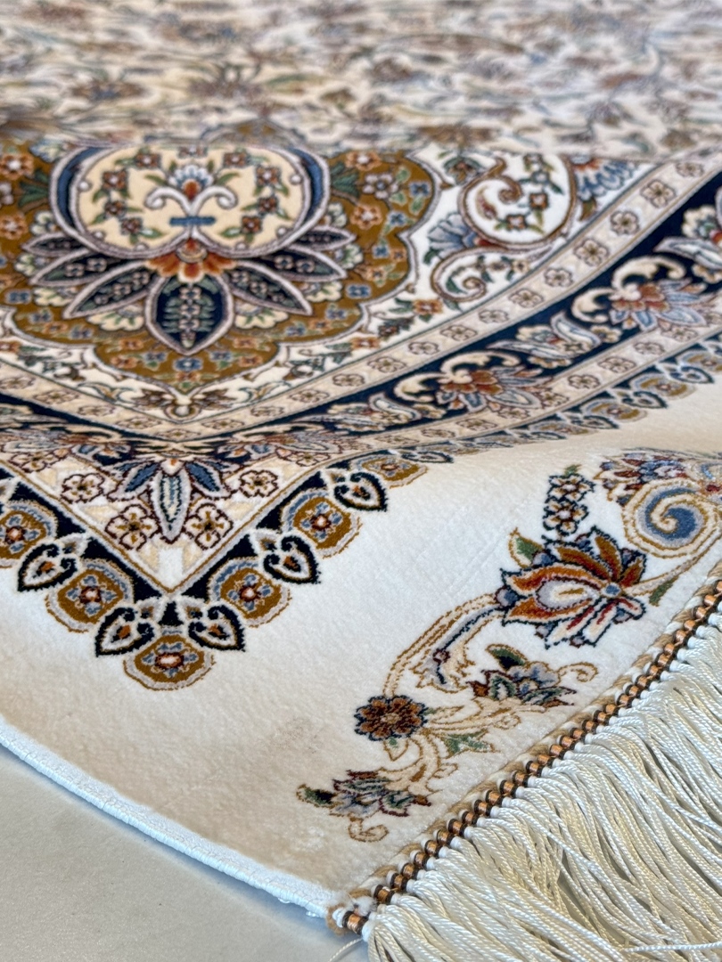 ربات بافت قم 300*400 مستطيل لچک ترنجي 70 رج ابريشم و بنبوسيلک کرم و بژ کرم و بژ 25 Kg