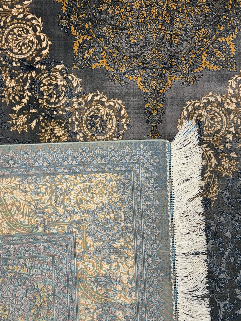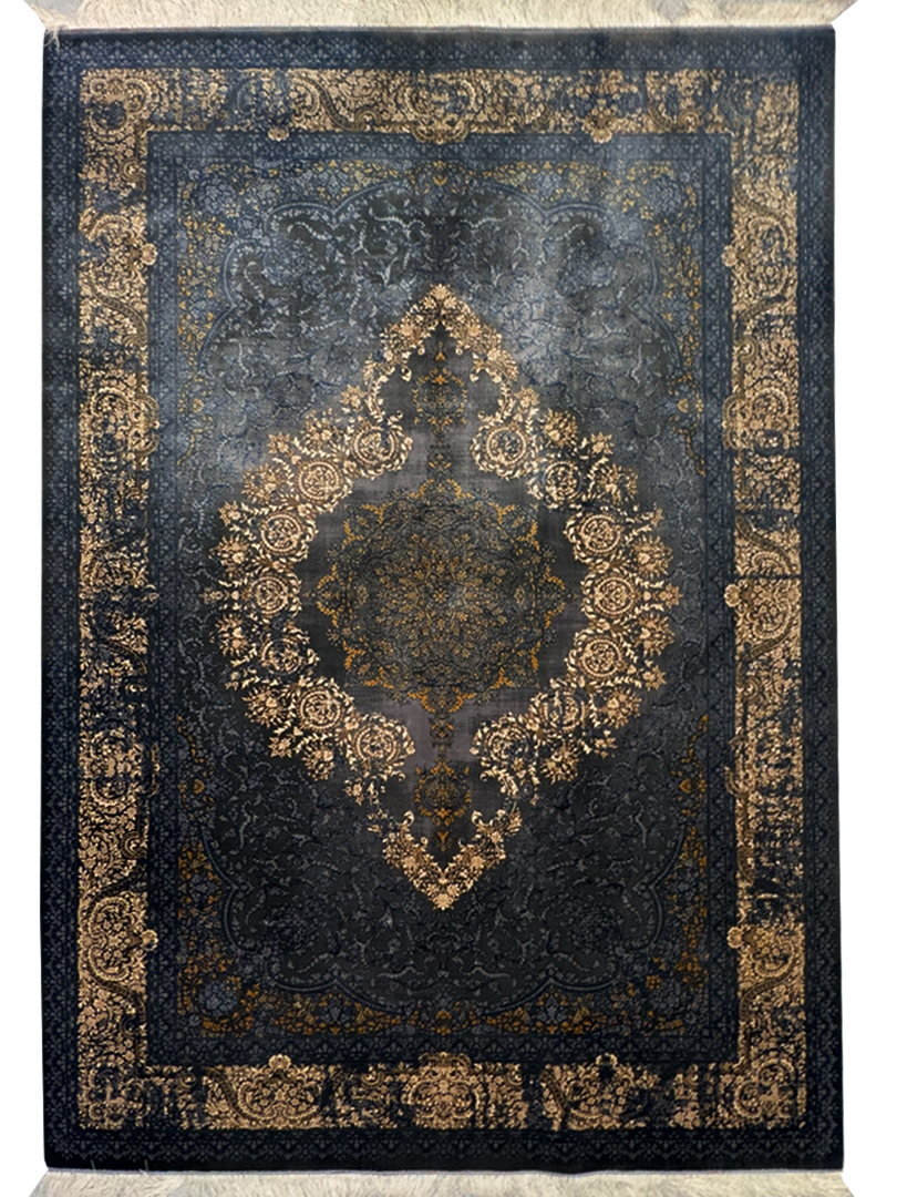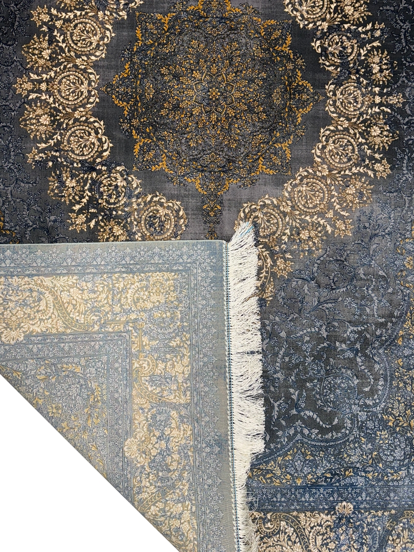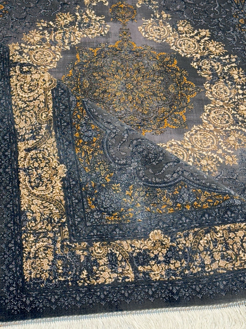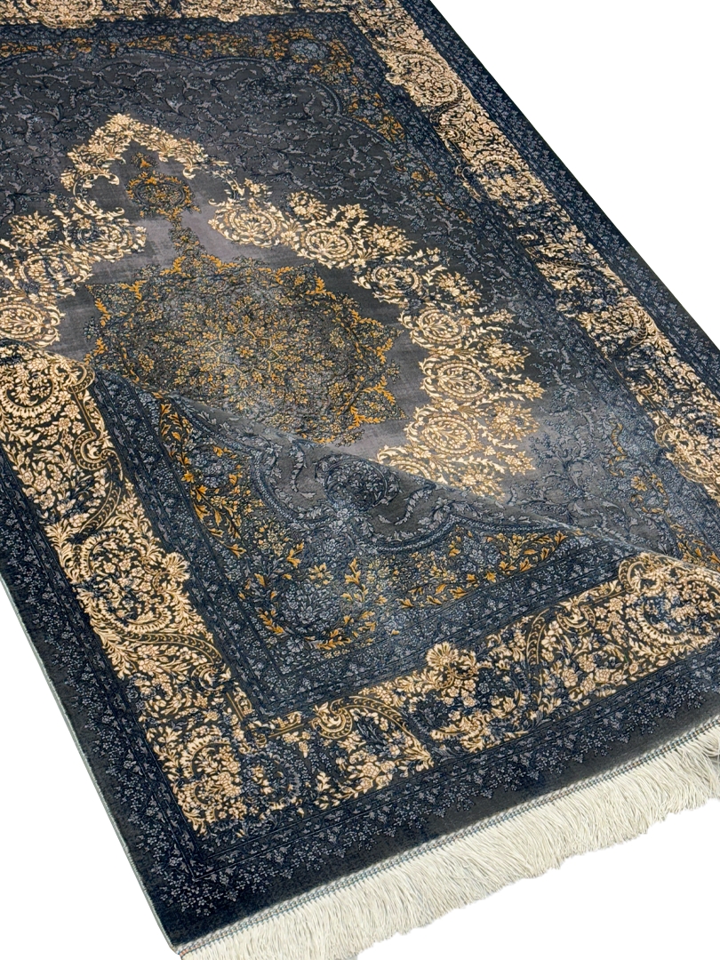 ربات بافت تمام ابريشم 2 نخ 150*225 مستطيل لچک ترنجي 70 رج بنبوسيلک و پشم ابي طوسي ابي طوسي 8 Kg