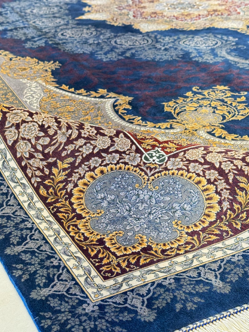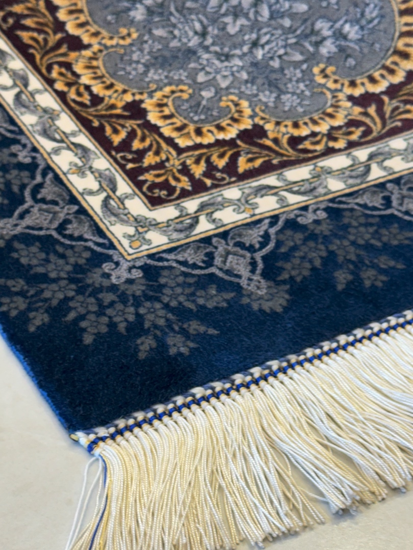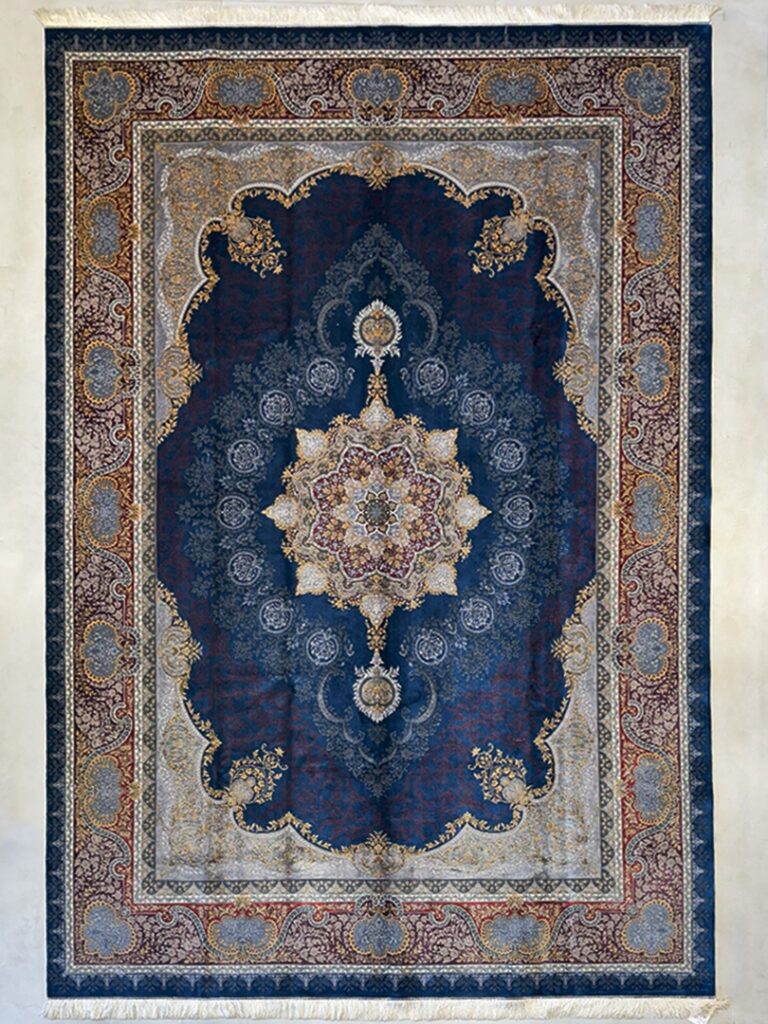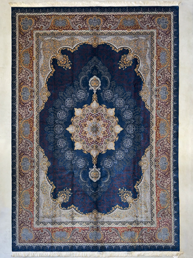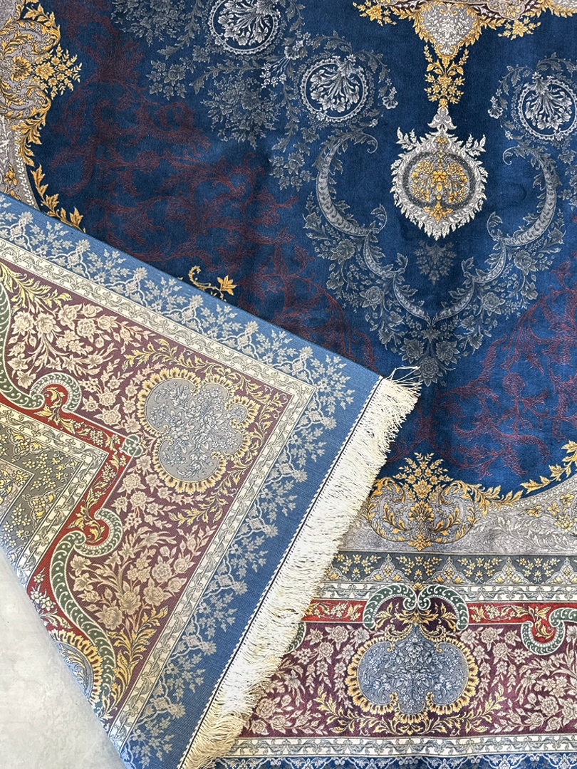ربات بافت تمام ابريشم 2 نخ 250*350 مستطيل لچک ترنجي 70 رج کرک و بمبوسيلک سورمه ايي الوان عنابي طلايي 25 Kg