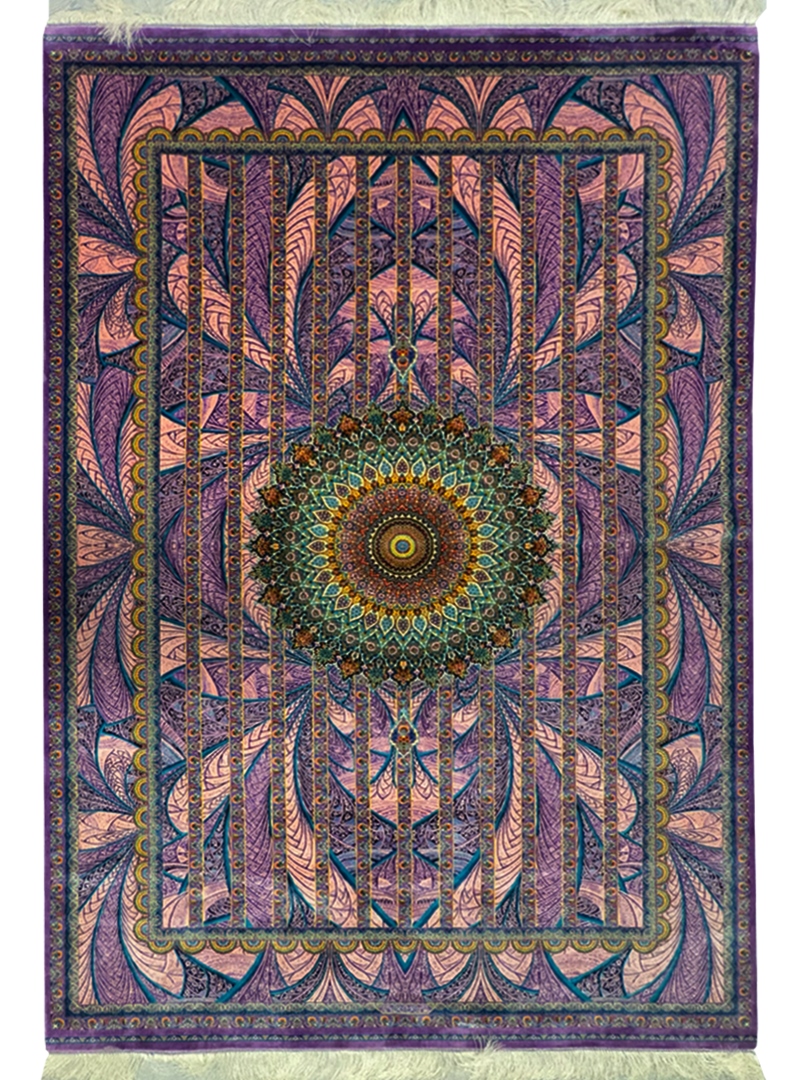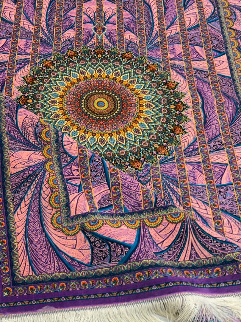 ربات بافت قم 150*225 مستطيل محرمات ستوني 70 رج ابريشم و بنبوسيلک ياسي کرم ياسي 5 Kg