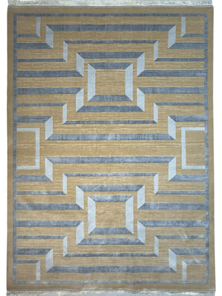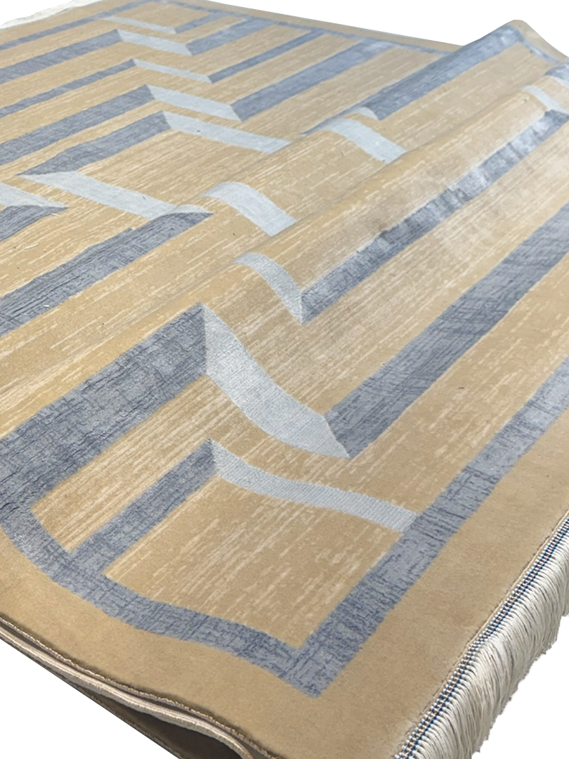ربات بافت مدرن 200*300 مستطيل مدرن 3 بعدي 40 رج کرک و بمبوسيلک کرم ابي فيلي 10 Kg