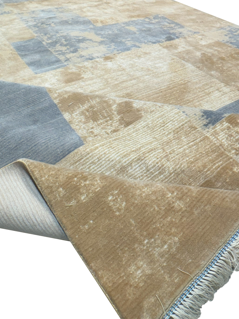 ربات بافت مدرن 200*300 مستطيل مدرن 50 رج کرک و بمبوسيلک کرم نسکافه اي ابي الوان 10 Kg