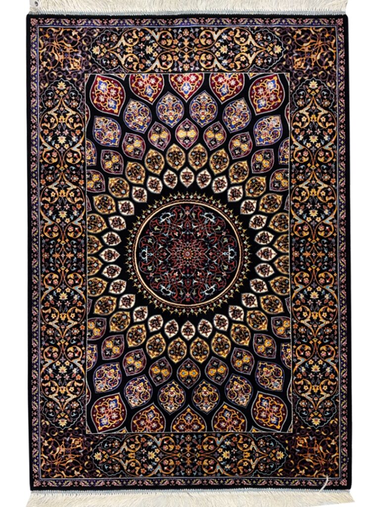 ربات بافت قم 80*120 مستطيل نقشه غلط 70 رج ابريشم و بنبوسيلک مشکي مشکي kg1