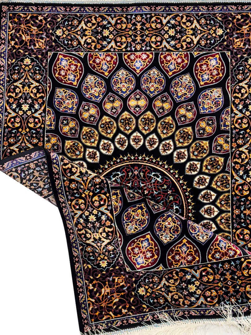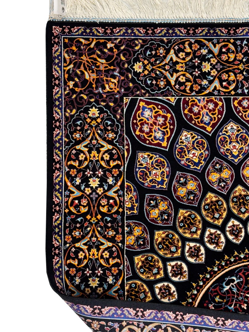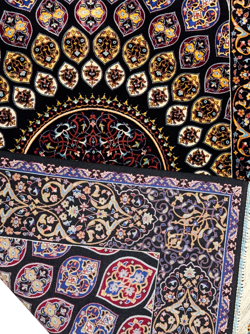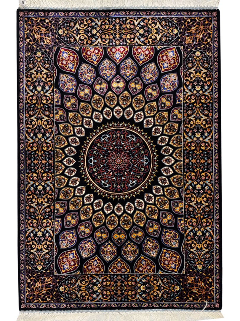 ربات بافت قم 80*120 مستطيل نقشه غلط 70 رج ابريشم و بنبوسيلک مشکي مشکي kg1