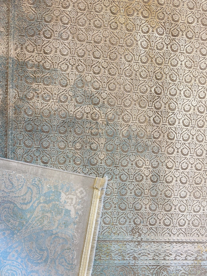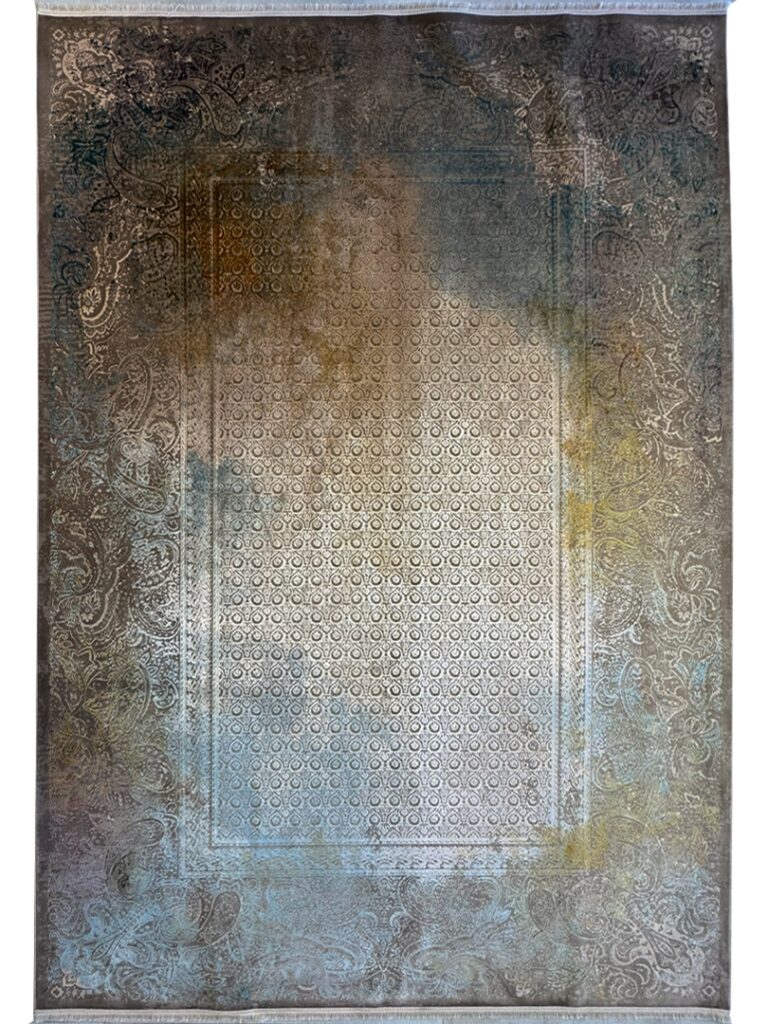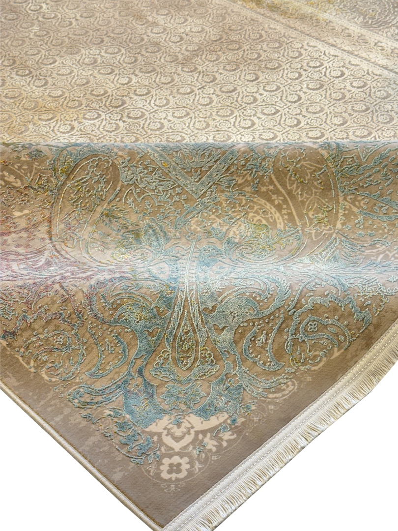 ربات بافت ماشيني 200*300 مستطيل پتينه مدرن 60 رج کرک و بمبوسيلک نسکافهاي کرم الوان 25 Kg