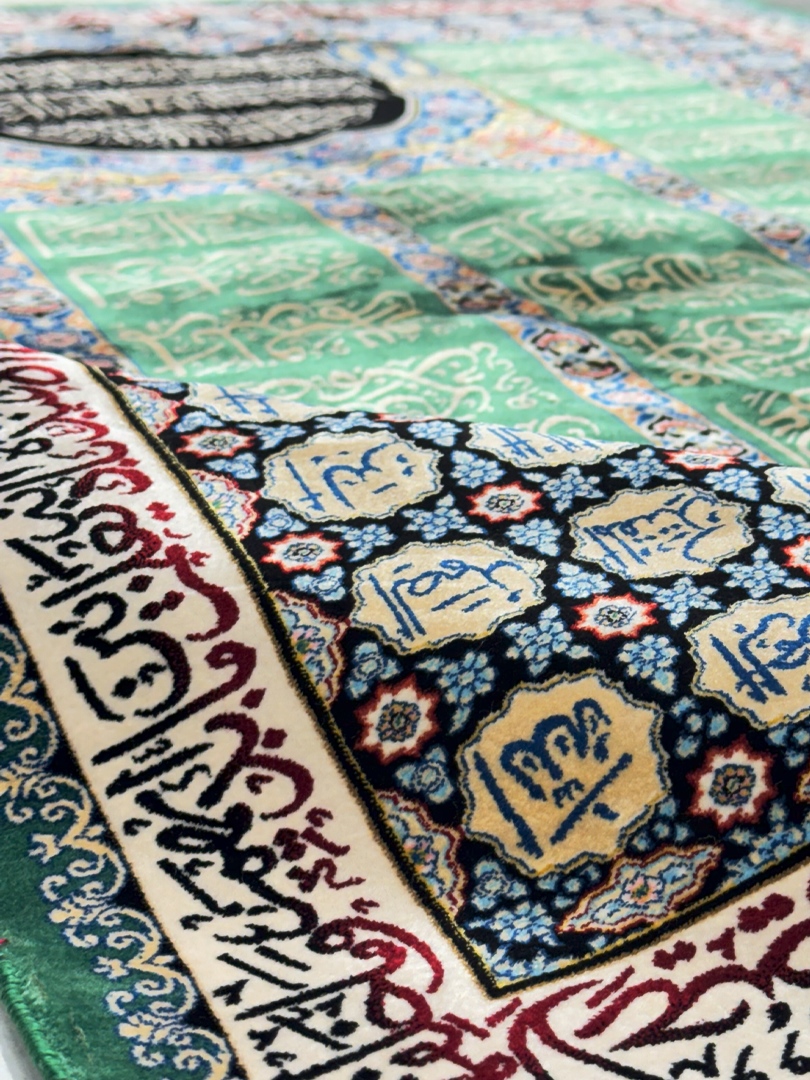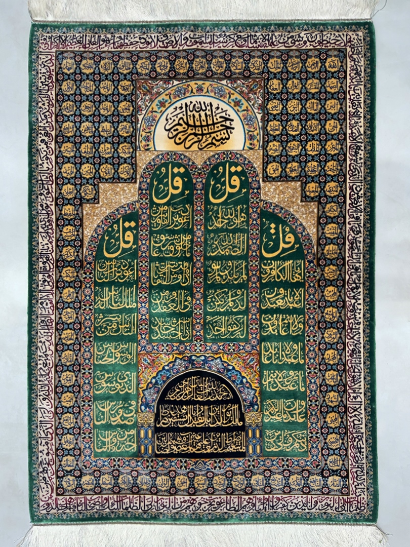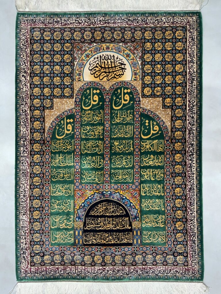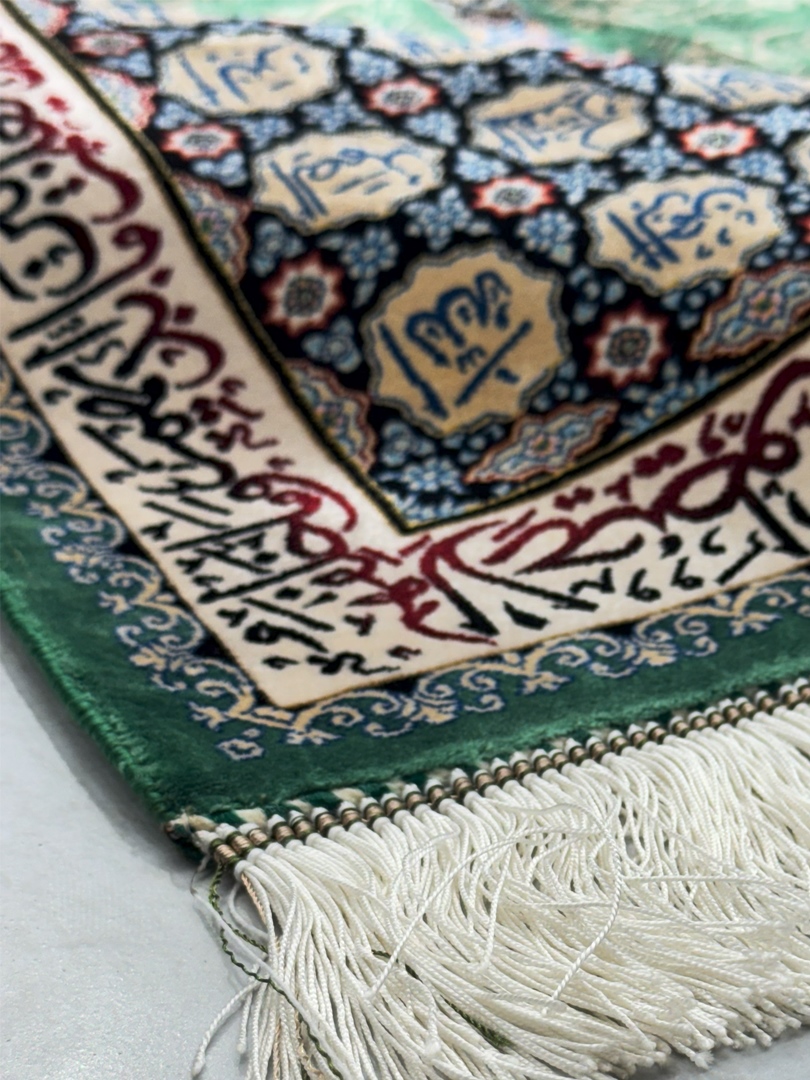 ربات بافت قم 100*150 مستطيل چهار قل 70 رج ابريشم و بنبوسيلک سبز سبز 2 Kg
