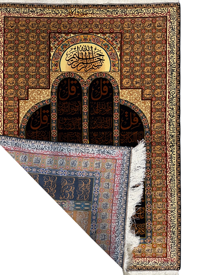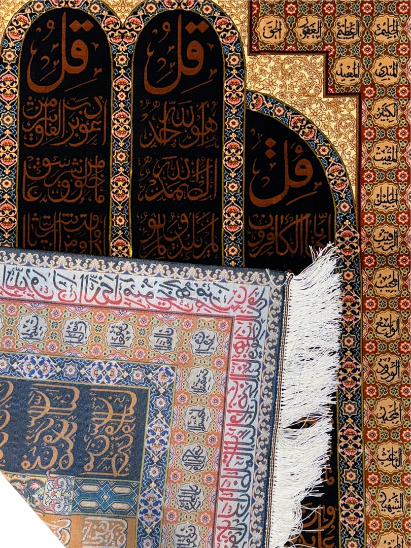 ربات بافت قم 100*150 مستطيل چهار قل 70 رج تمام ابريشم مشکي دارچيني کرم – مشکي 2 Kg