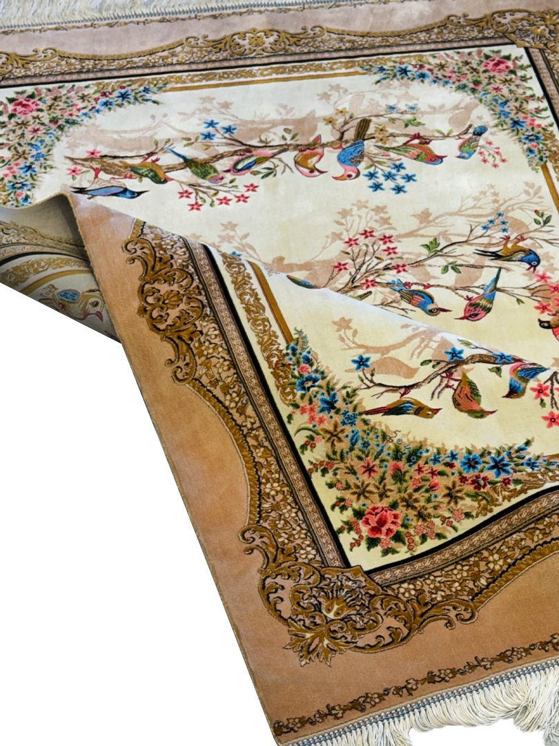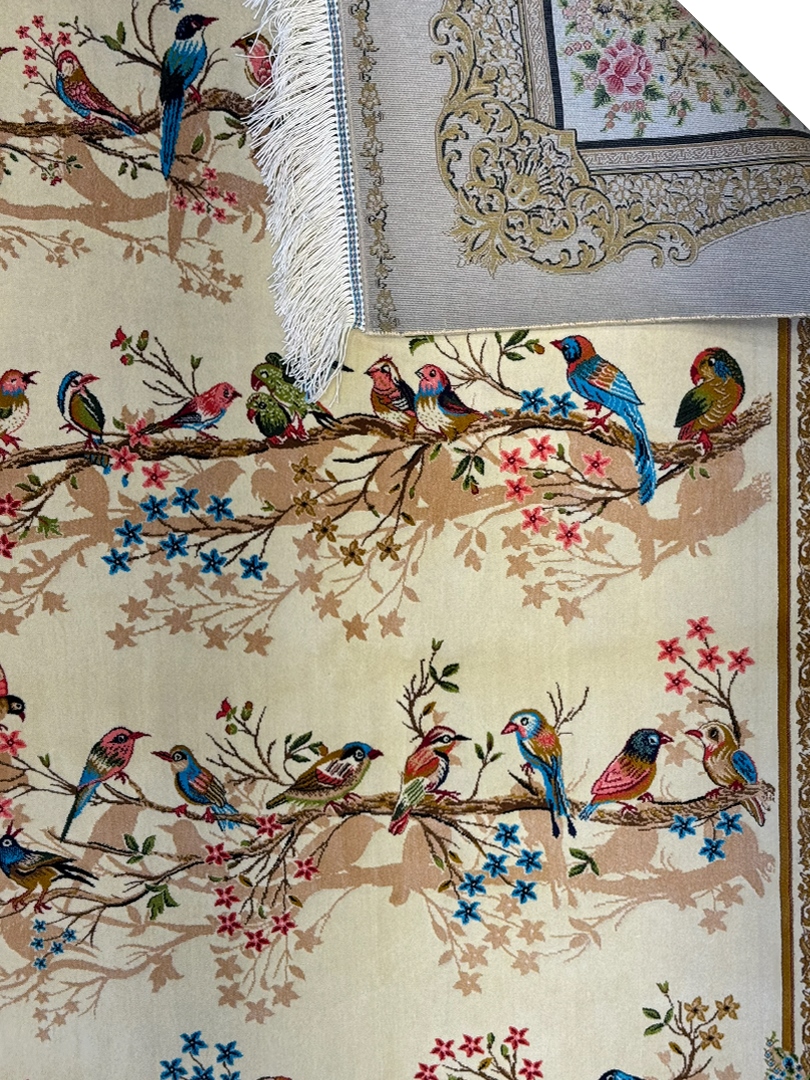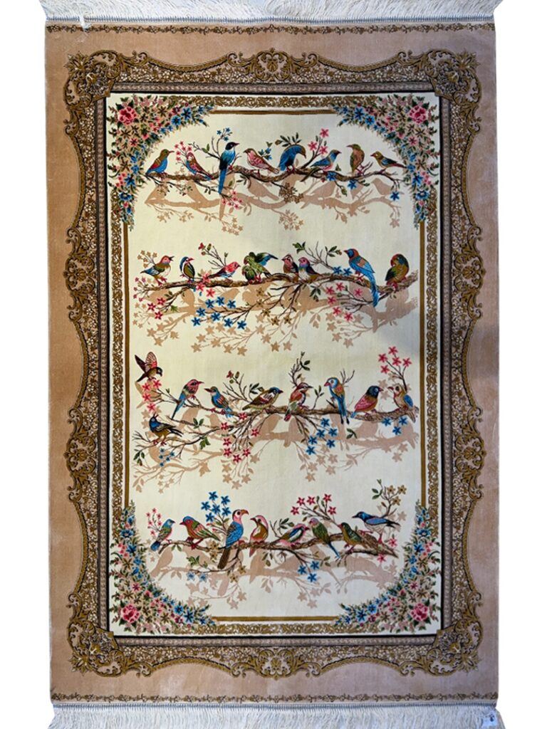 فرش شادکام > فروشگاه > فرش ربات بافت > فرش ربات بافت مستطیل چهل طوطی قابی 70 رج پشم و بنبوسیلک کد 2003720
