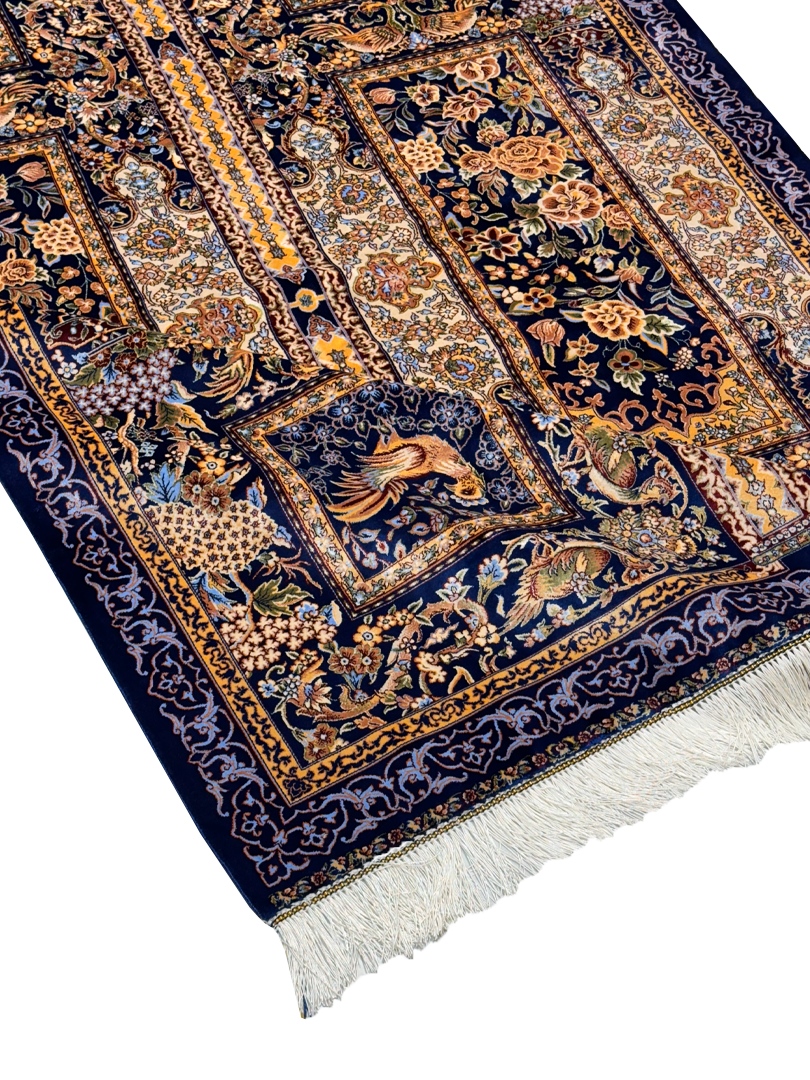 فرش ربات بافت مستطیل گلستان قابی 70رج تمام ابریشم کد 2004033