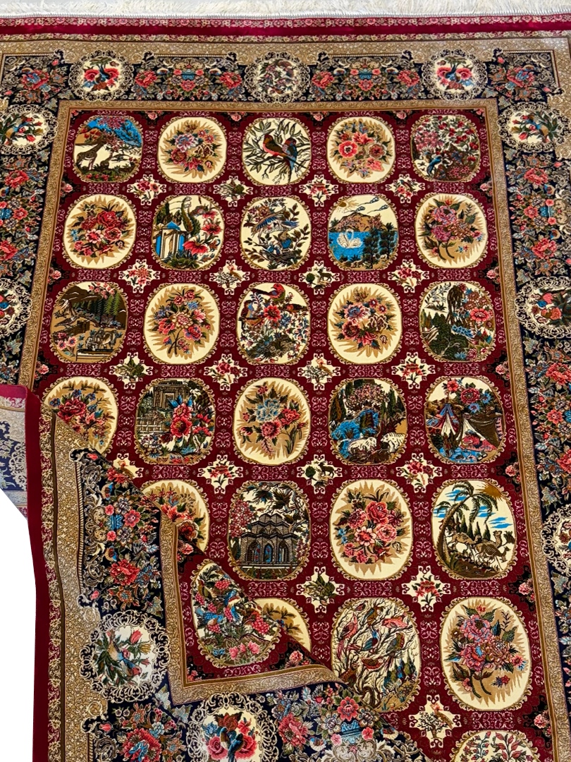 فرش شادکام > فروشگاه > فرش ربات بافت > فرش ربات بافت مستطیل گلستان قابی 70 رج ابریشم و بنبوسیلک کد 2003736
