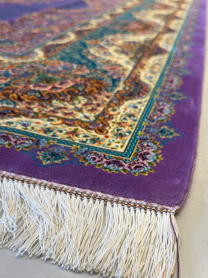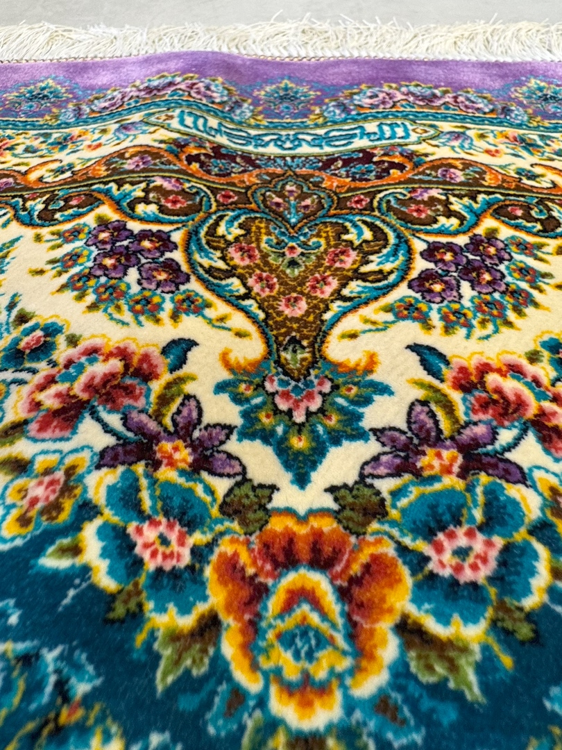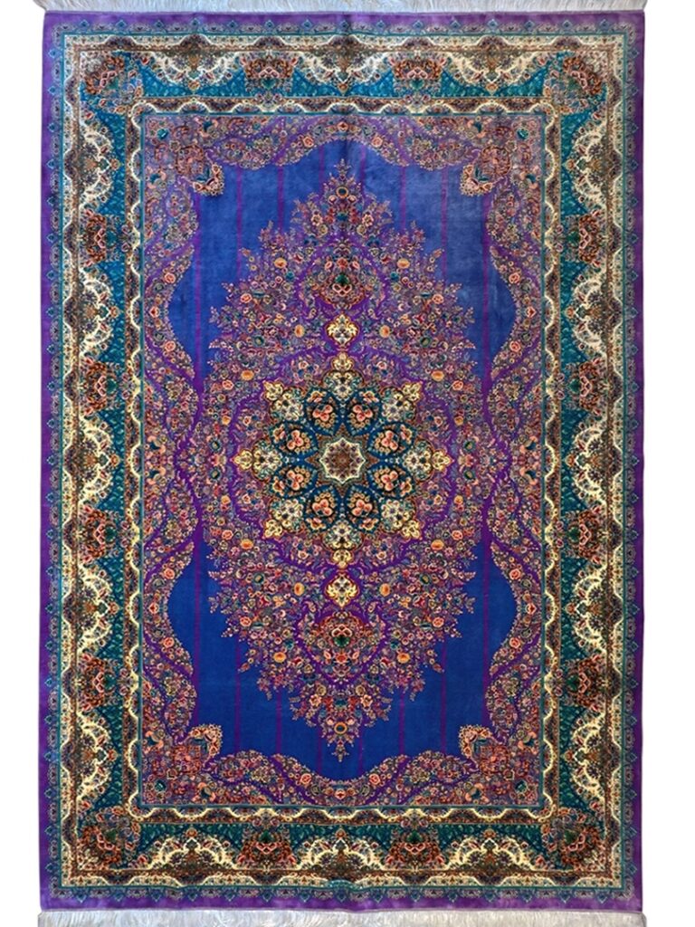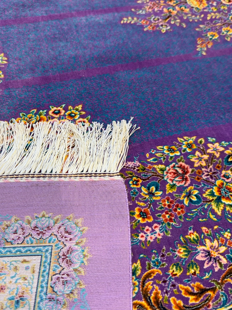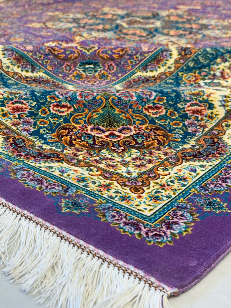 ربات بافت قم 200*300 مستطيل گلفرنگ 70 رج ابريشم و بنبوسيلک ياسي ياسي 17 Kg