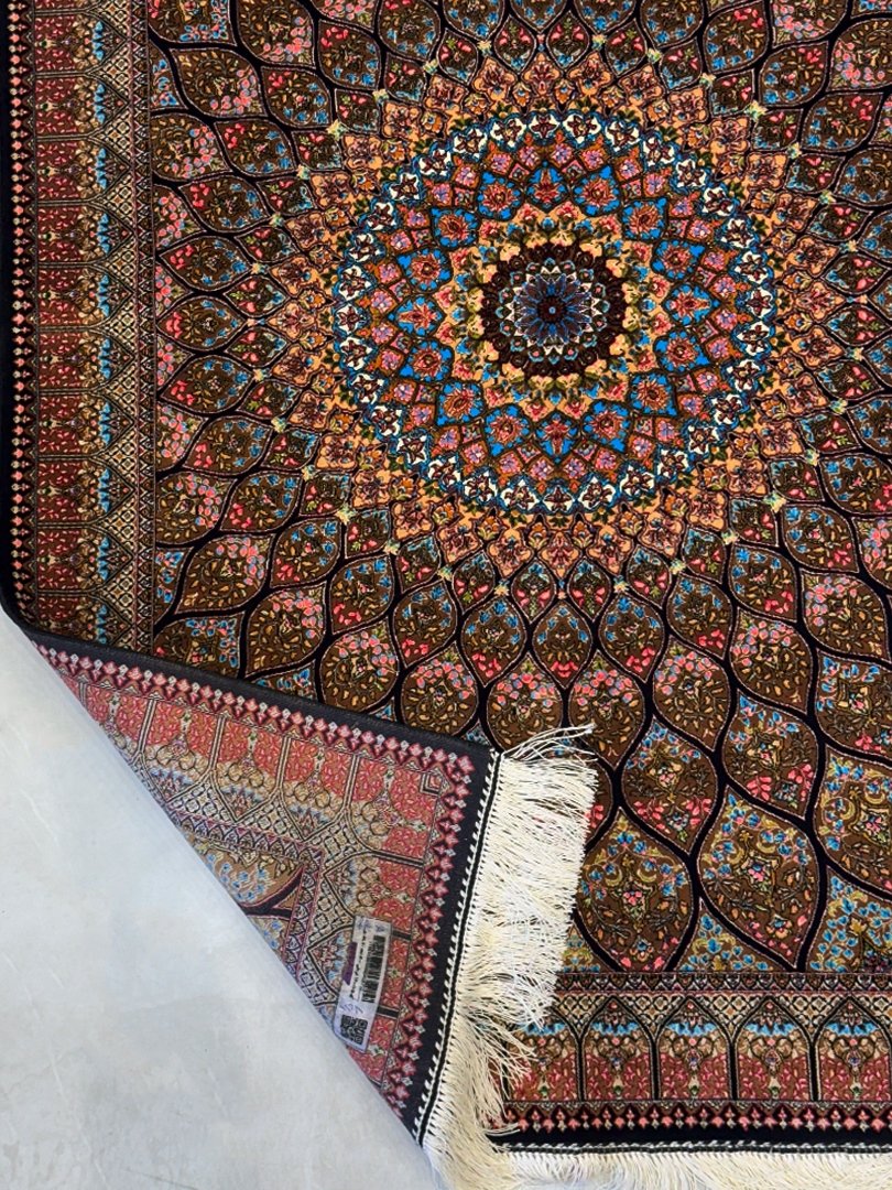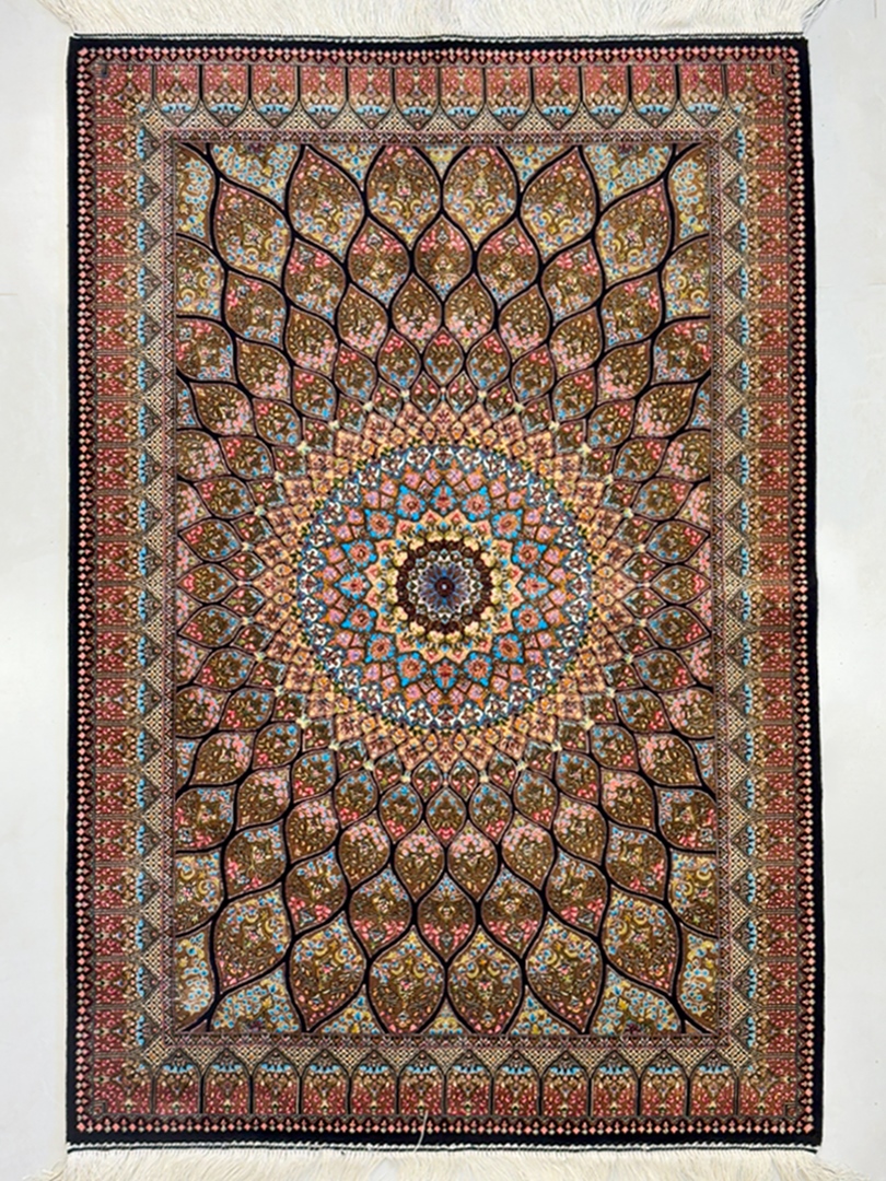 ربات بافت قم 80*120 مستطيل گنبدي 70 رج ابريشم و بنبوسيلک کرم کرم 2 Kg