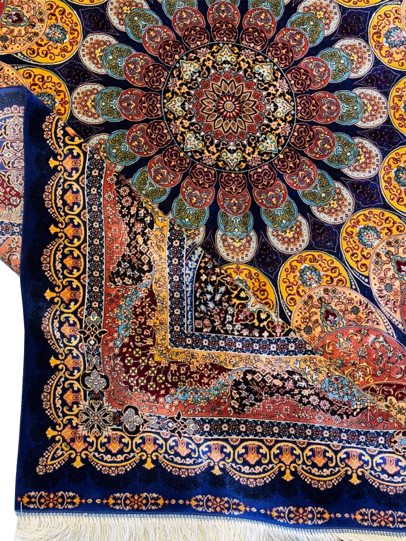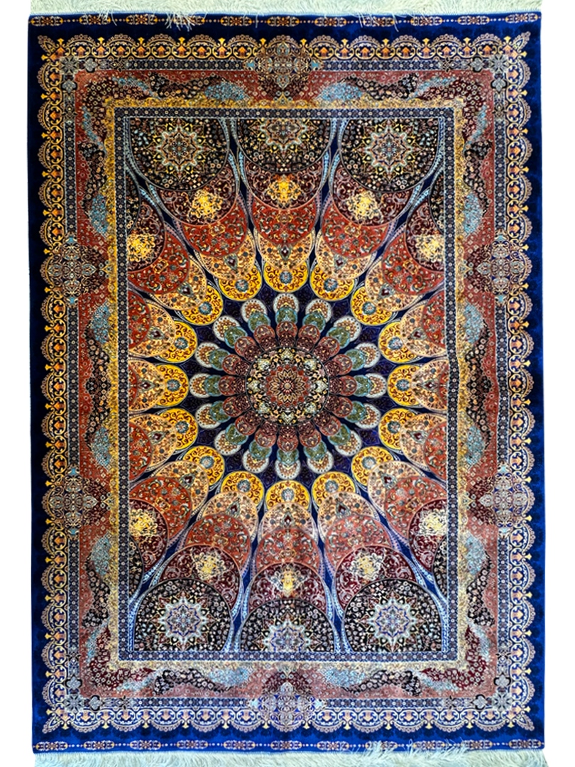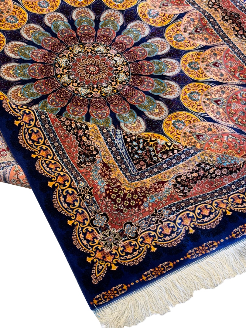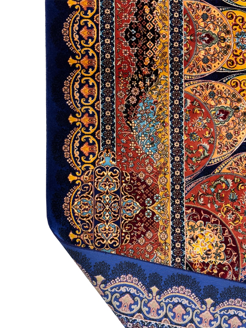 ربات بافت قم 150*225 مستطيل گنبد جديد 70 رج ابريشم و بنبوسيلک ابي الوان الوان 8 Kg