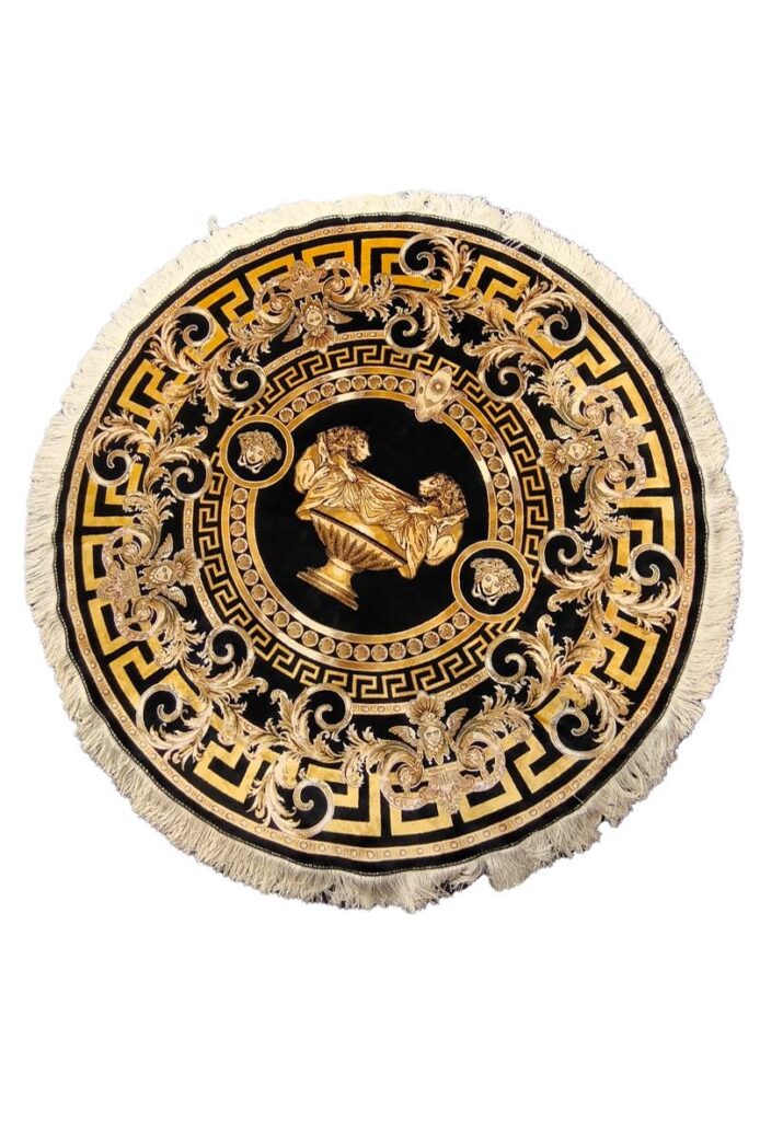 ربات بافت قم 150*150 دايره ورساچه ترنجي 70 رج ابريشم و بنبوسيلک مشکي طلايي مشکي طلايي 4 Kg