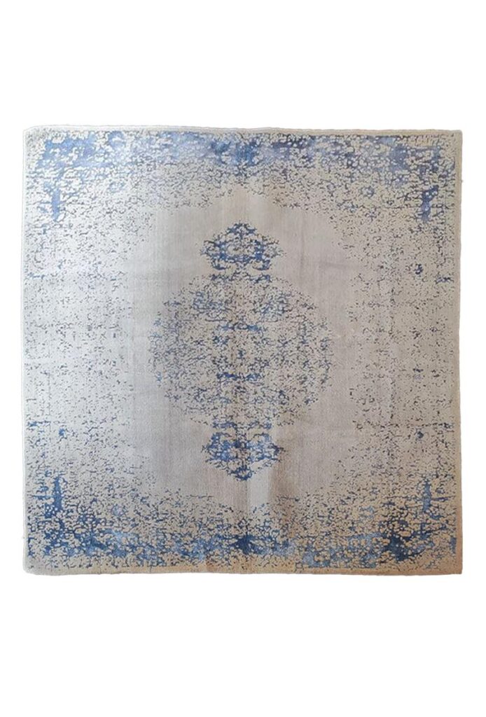 ربات بافت مدرن 200*180 مستطيل پتينه مدرن 40 رج پشم ابي کرم سورمه ايي 12 Kg
