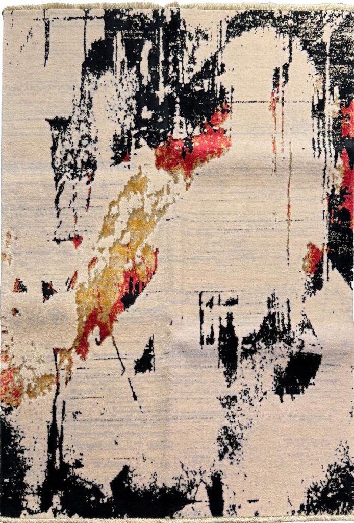 ربات بافت مدرن 100*150 مستطيل پتينه مدرن 40 رج پشم و ابريشم مشکي طلايي لاکي کرم 4 Kg