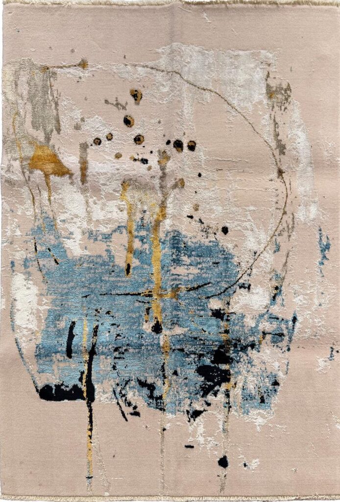 ربات بافت مدرن 100*150 مستطيل پتينه مدرن 40 رج پشم و ابريشم کرم فيروزه ايي کرم 4 Kg