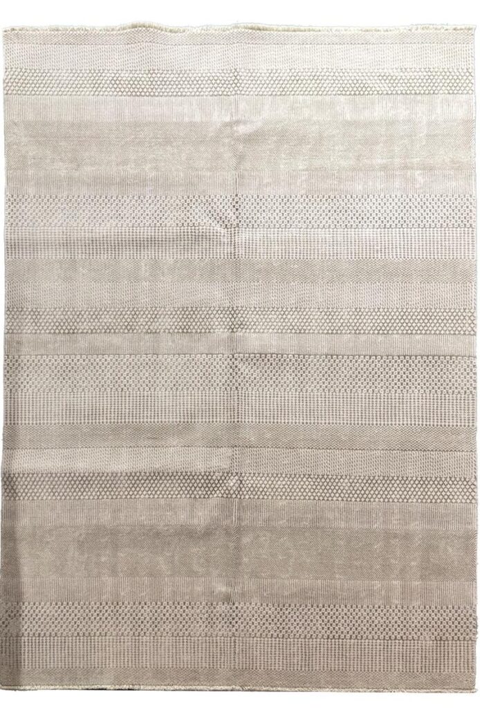 ربات بافت مدرن 240*150 مستطيل پتينه مدرن 40 رج پشم و ابريشم کرم خاکي کرم 4 Kg