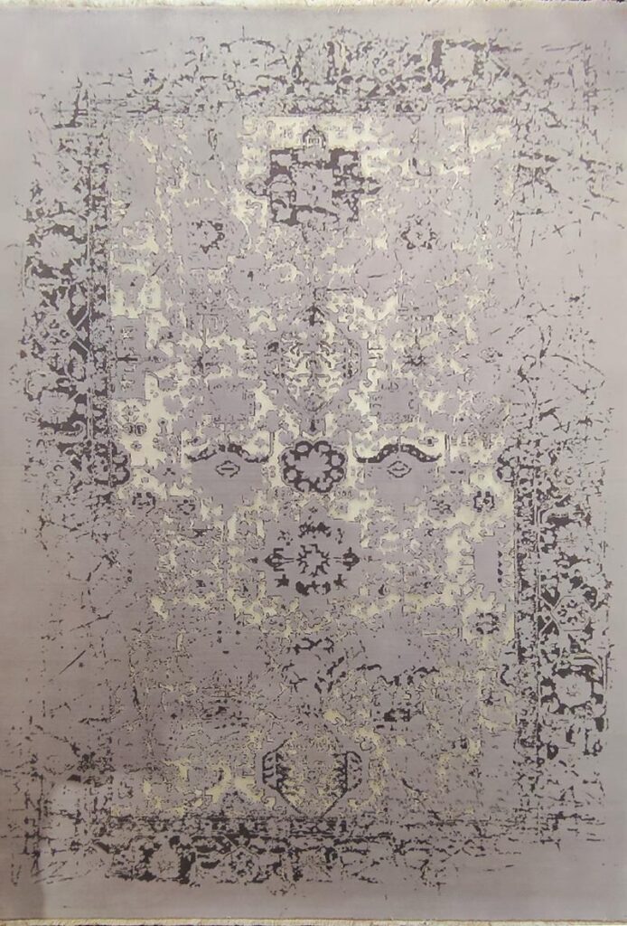 ربات بافت پشم 200*300 مستطيل پتينه مدرن 30 رج پشم و بنبوسيلک طوسي کرم طوسي 25 Kg