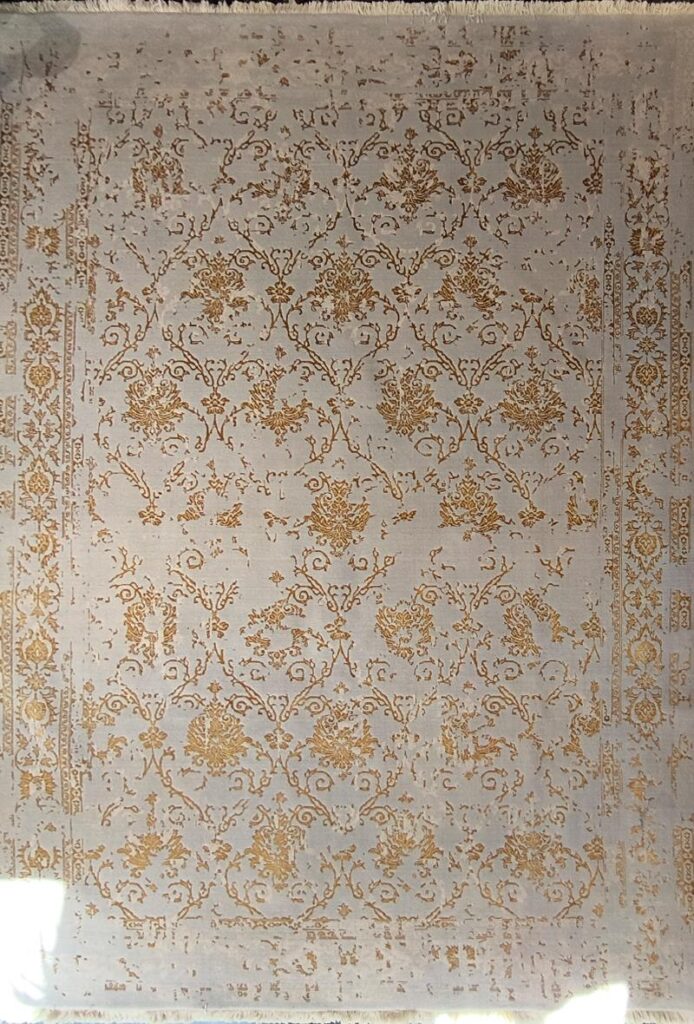 ربات بافت پشم 200*300 مستطيل پتينه مدرن 35 رج پشم و بنبوسيلک طوسي فيروزهاي طوسي 25 Kg