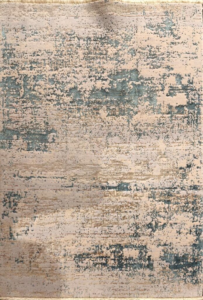 ربات بافت پشم 100*150 مستطيل پتينه مدرن 30 رج پشم و بنبوسيلک. طوسي فيروزهاي طوسي 25 Kg