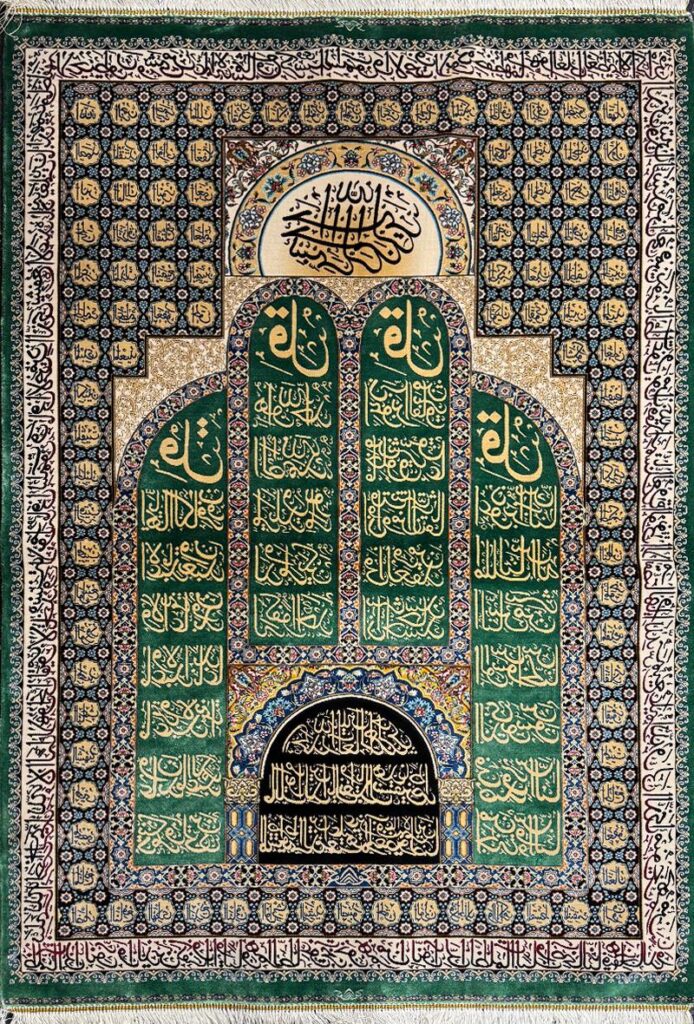 ربات بافت ربات 100*150 مستطيل چهار قل 70 رج ابريشم و بنبوسيلک سبز کرم سبز 3 Kg