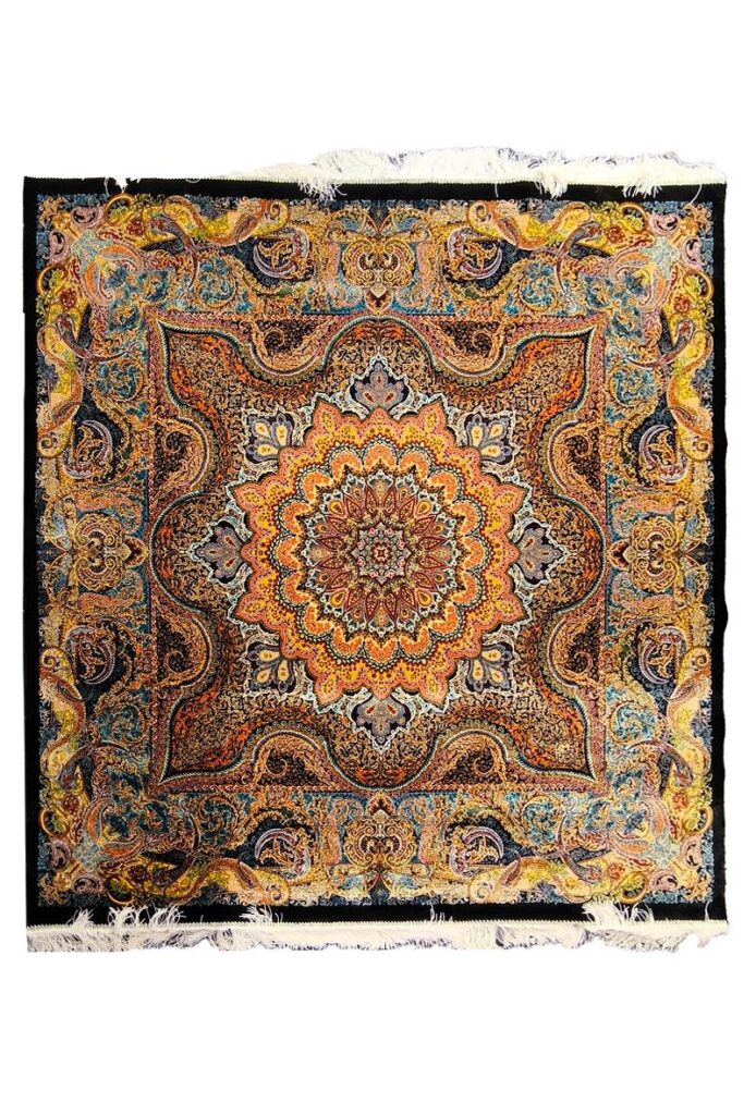 ربات بافت قم 200*200 مربع کاظمي 70 رج ابريشم و بنبوسيلک الوان مشکي 6 Kg