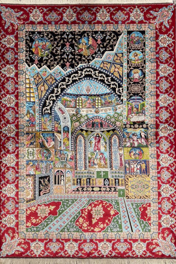 ربات بافت قم 100*150 مستطيل کليسا 70 رج ابريشم و بنبوسيلک الوان لاکي 4 Kg