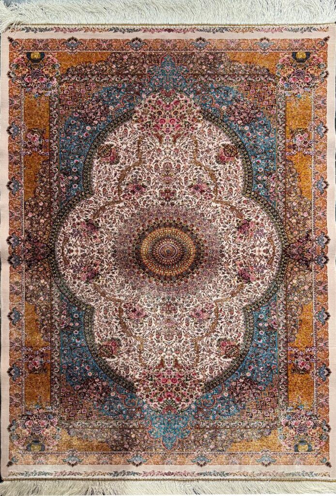 ربات بافت ربات 100*150 مستطيل گلريز معصومي 70 رج ابريشم و بنبوسيلک عنابي عنابي 3 Kg