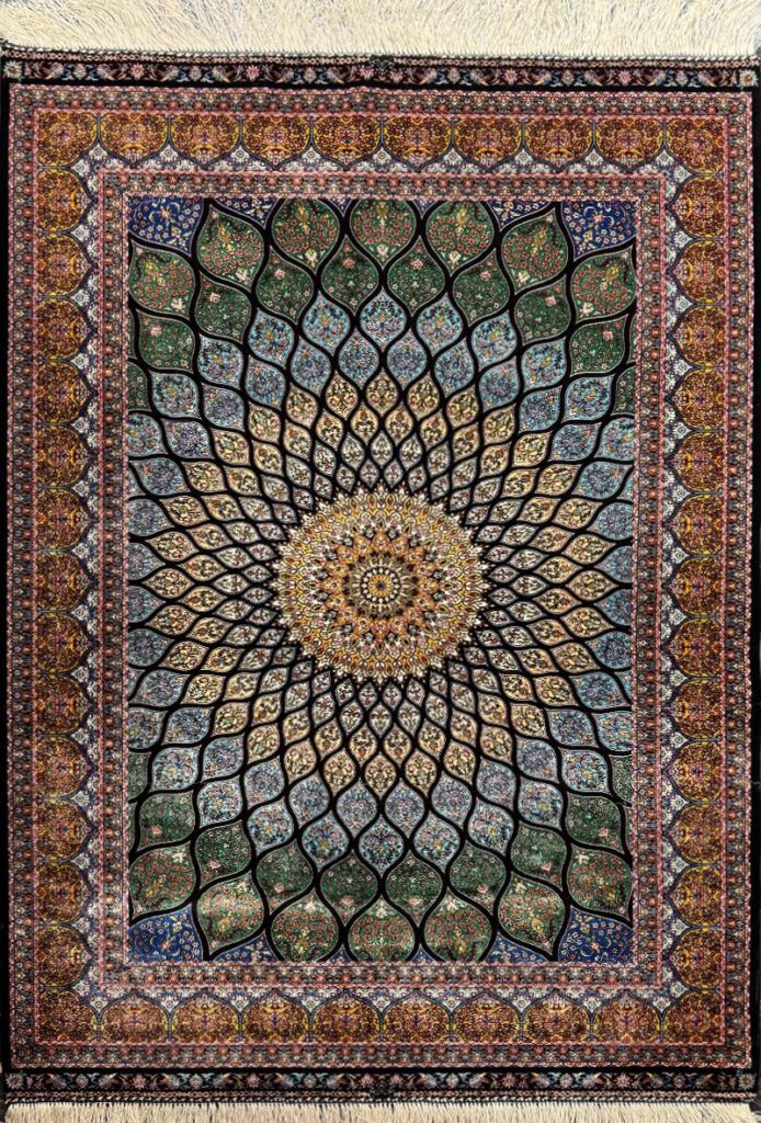 ربات بافت ربات 100*150 مستطيل گنبدي 70 رج ابريشم و بنبوسيلک الوان الوان 3 Kg