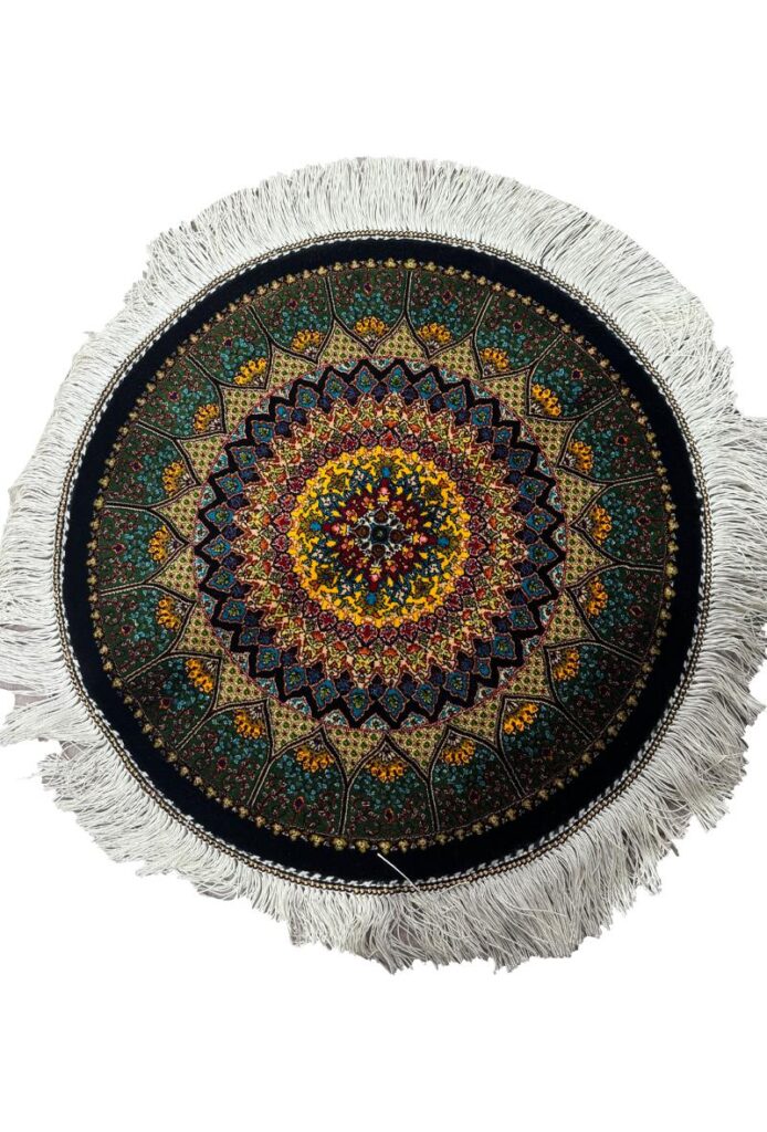 ربات بافت قم 50*50 مستطيل گنبدي 70 رج ابريشم و بنبوسيلک سبز مشکي Kg 1