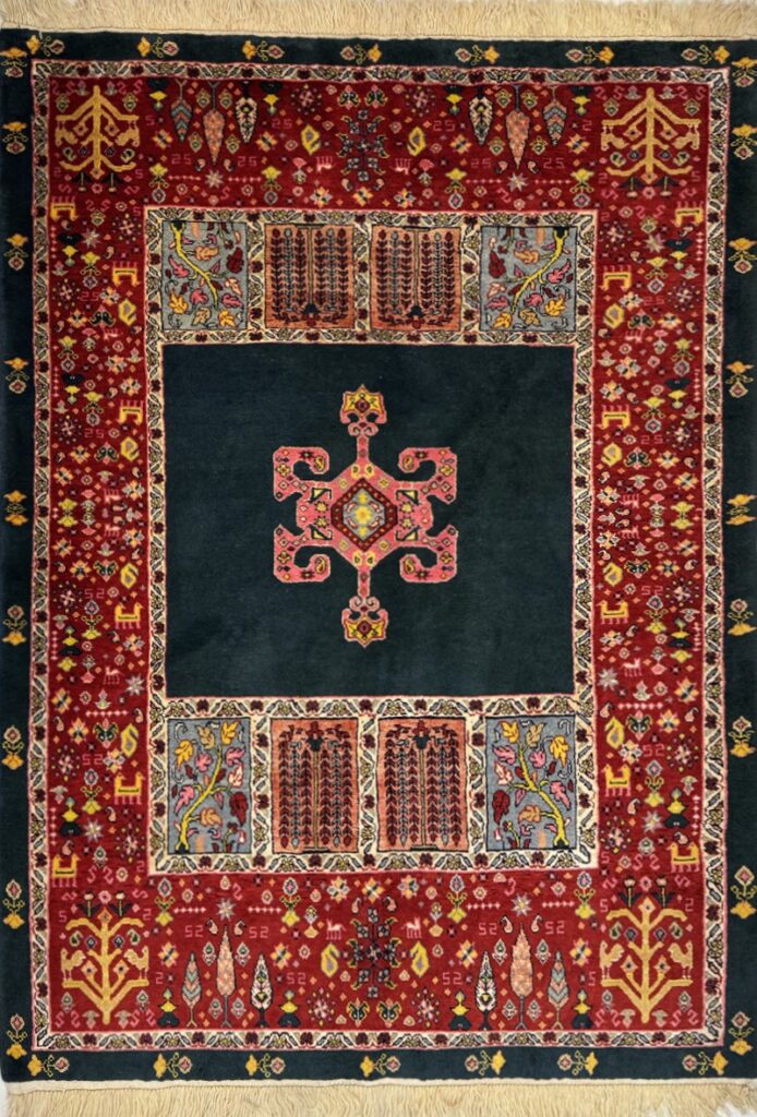 دست بافت قشقايي 125*170 مستطيل زرتشتي 40 پشم دست ريس زرد قرمز 8 Kg