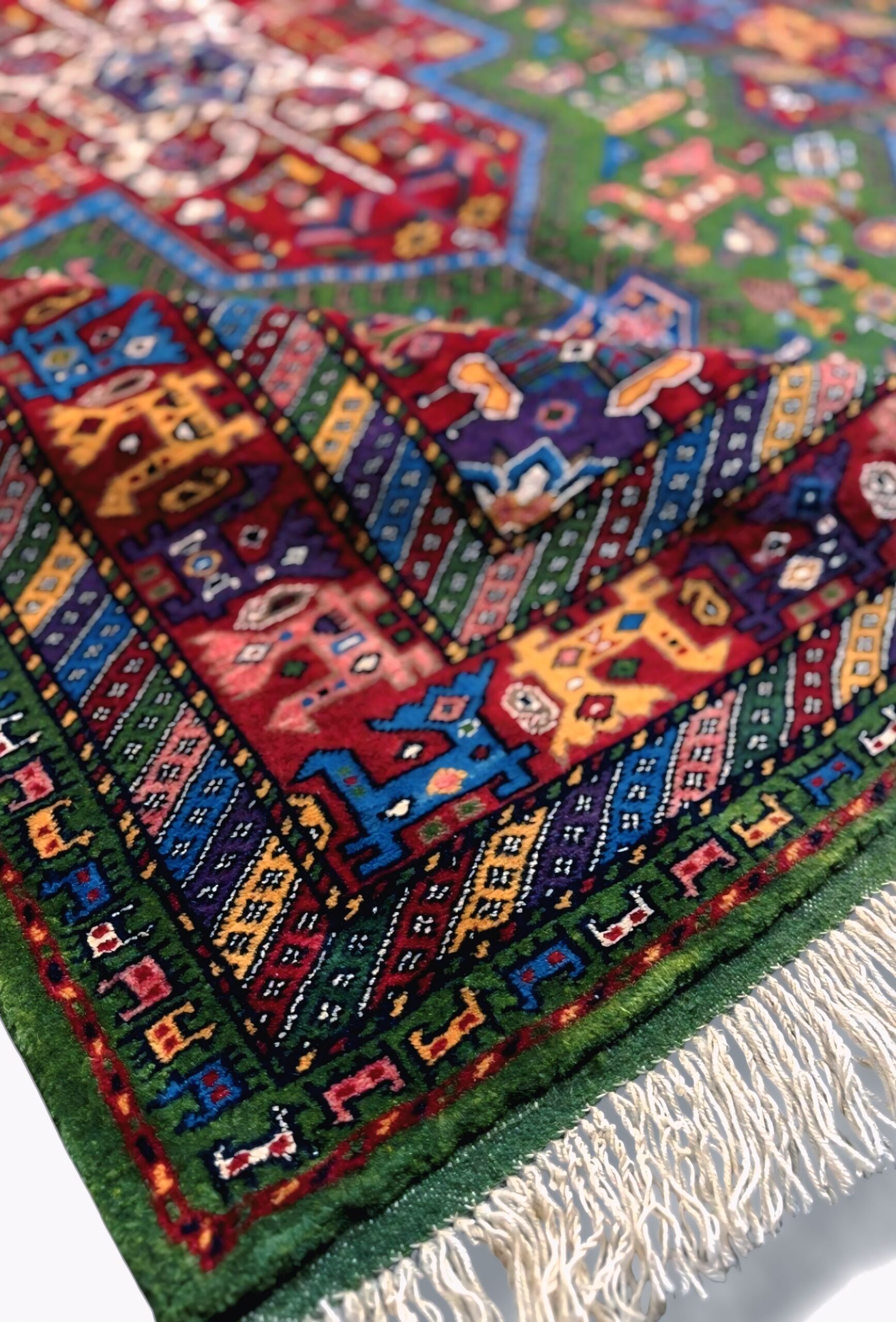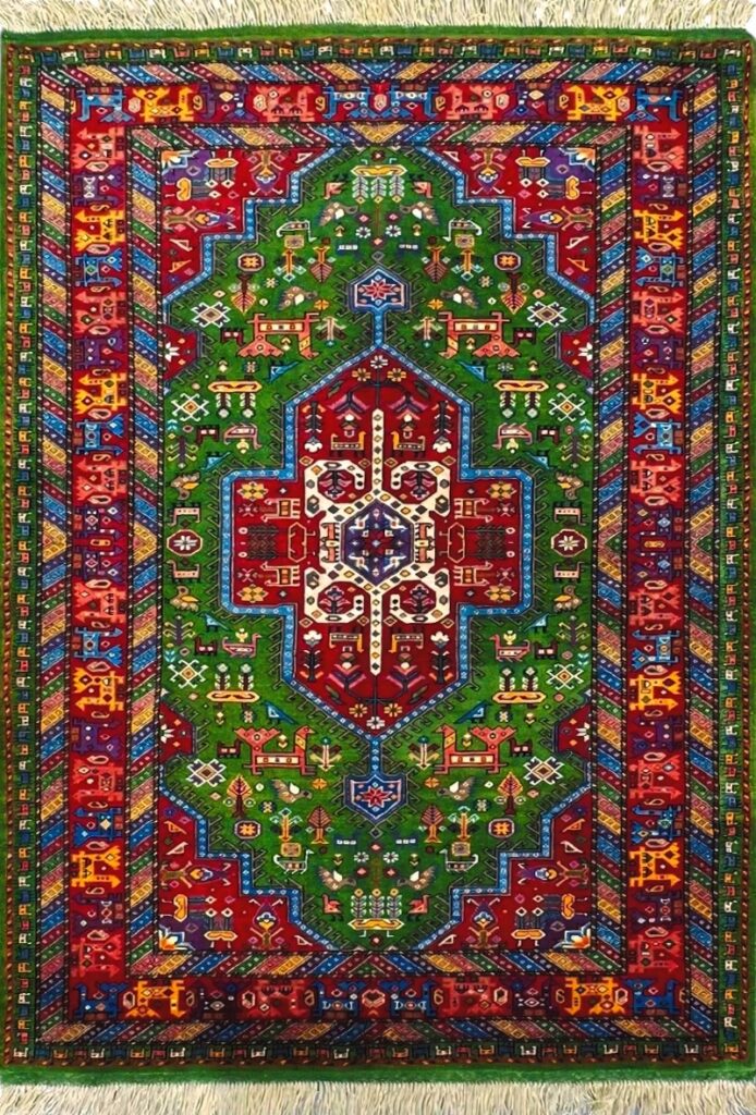 دست بافت قشقايي 150*200 مستطيل مهر گردون 40 رج پشم سبز لاکي 10 Kg